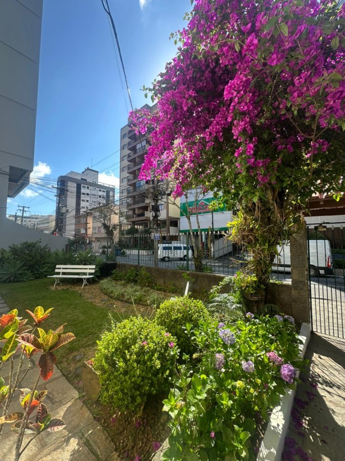 Condomínio com câmeras de segurança e jardim