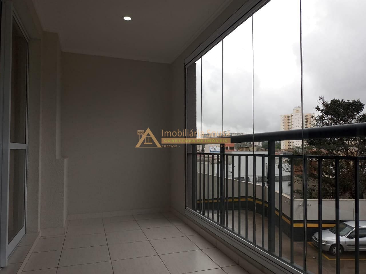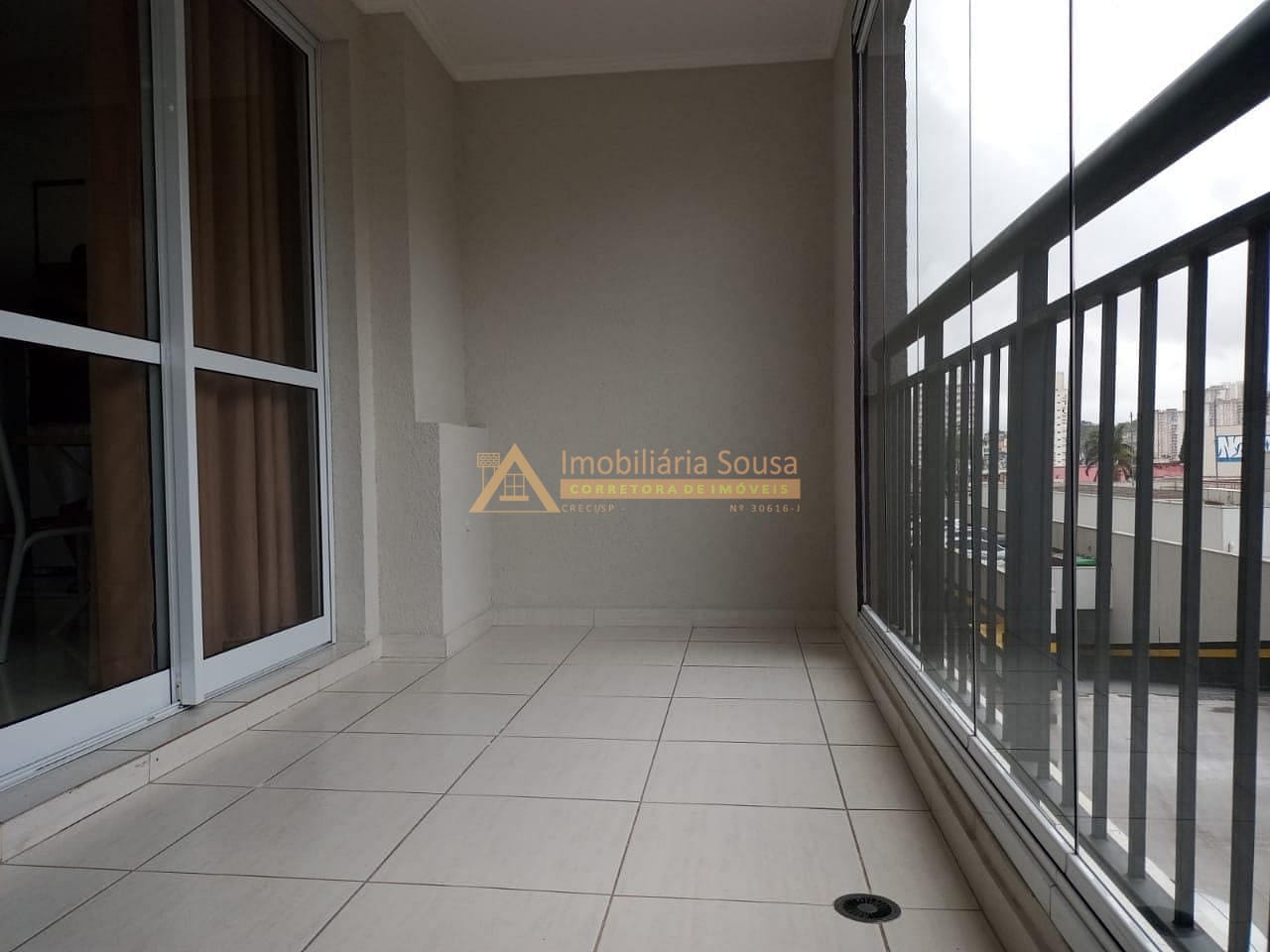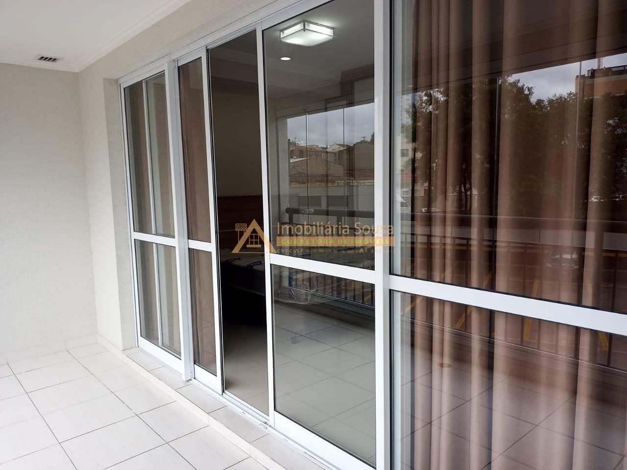 Sacada envidraçada com cortina de rolo