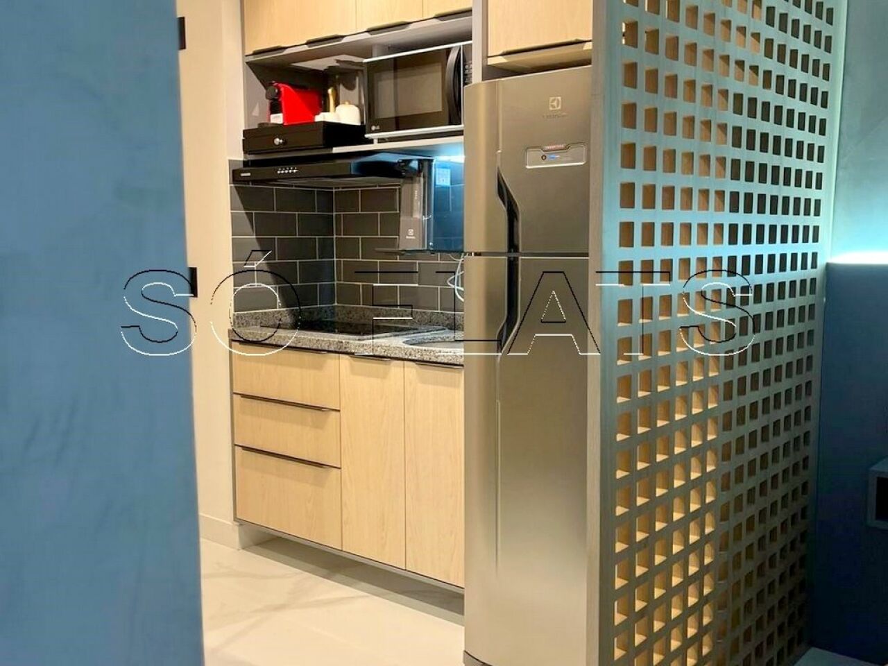 Apartamento no modelo Studio, mobiliado e equipado, com 24m², distribuídos em 1 dormitório, varanda e cozinha americana.
