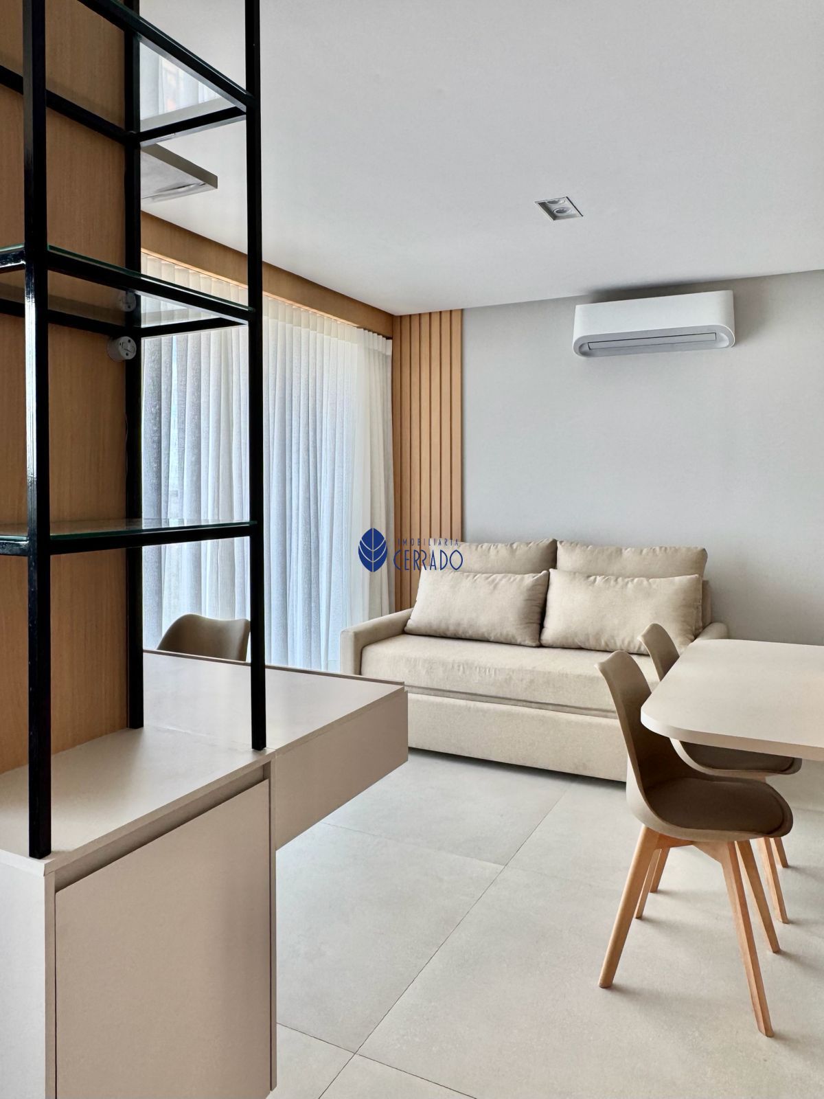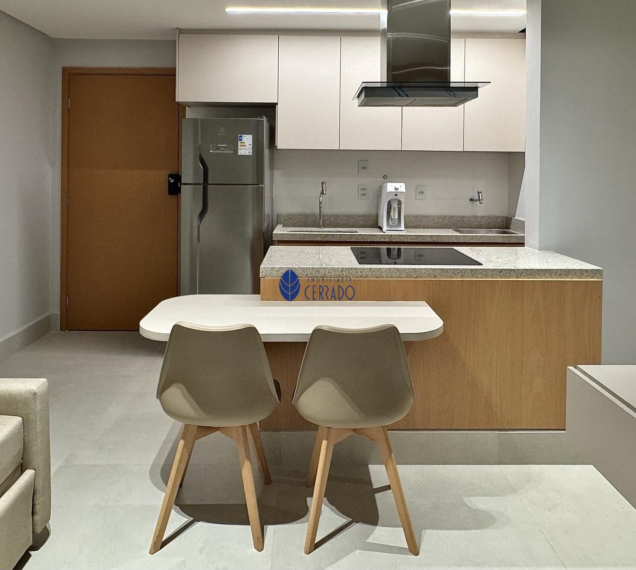 Apresentamos este studio mobiliado para locação, 1 quarto, banheiro, possui 1 vaga de garagem, varanda privada.