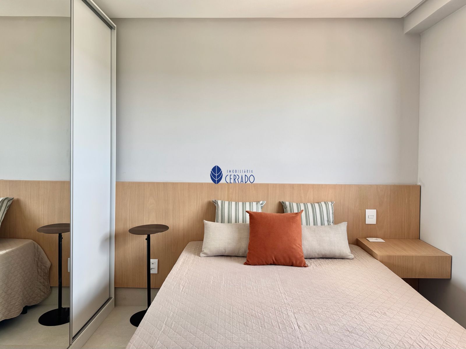 • Cabeceira + mesa de cabeceira suspensa em marcenaria