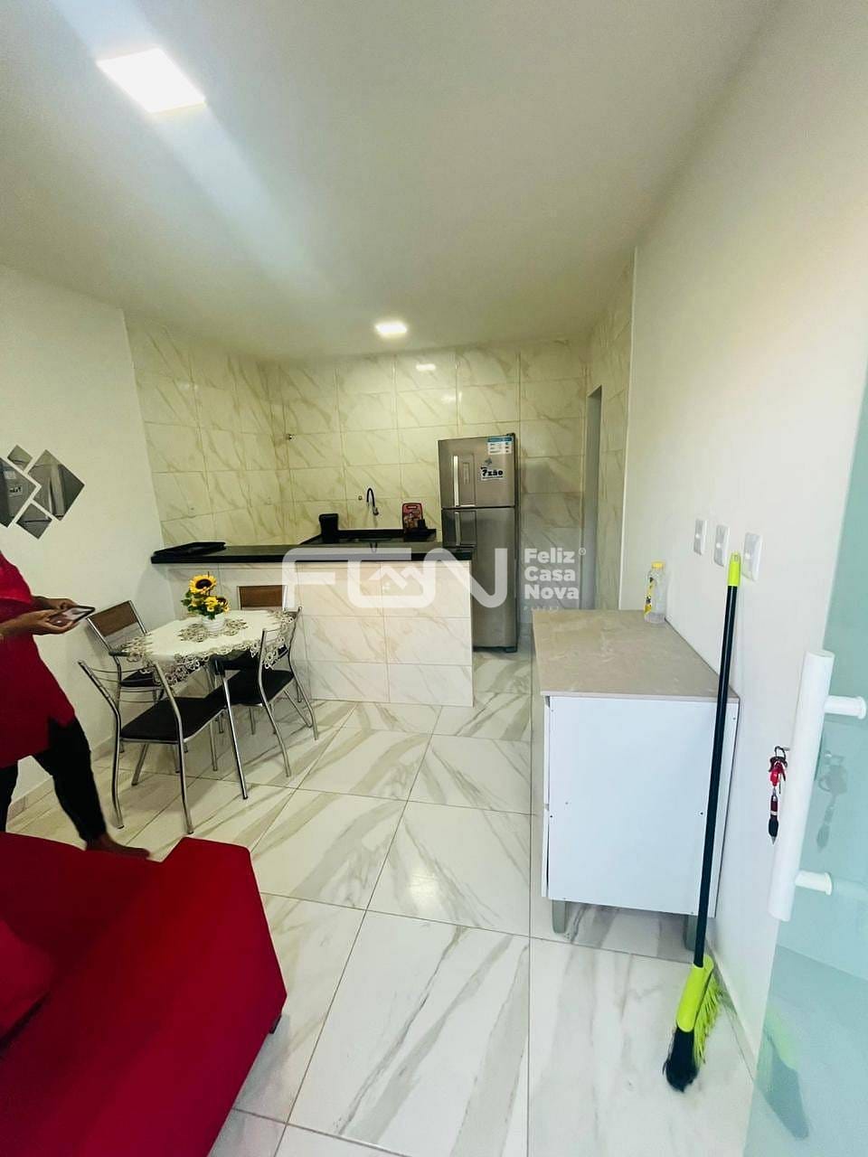 O apartamento possui 1 quarto, sala, cozinha, banheiro, área de serviço e varanda, com ambiente bem distribuído e ventilado. O imóvel está totalmente mobiliado e pronto para morar, equipado com geladeira, fogão, ar-condicionado, cama, mesa e cadeiras, oferecendo toda a comodidade para quem deseja entrar apenas com seus pertences.