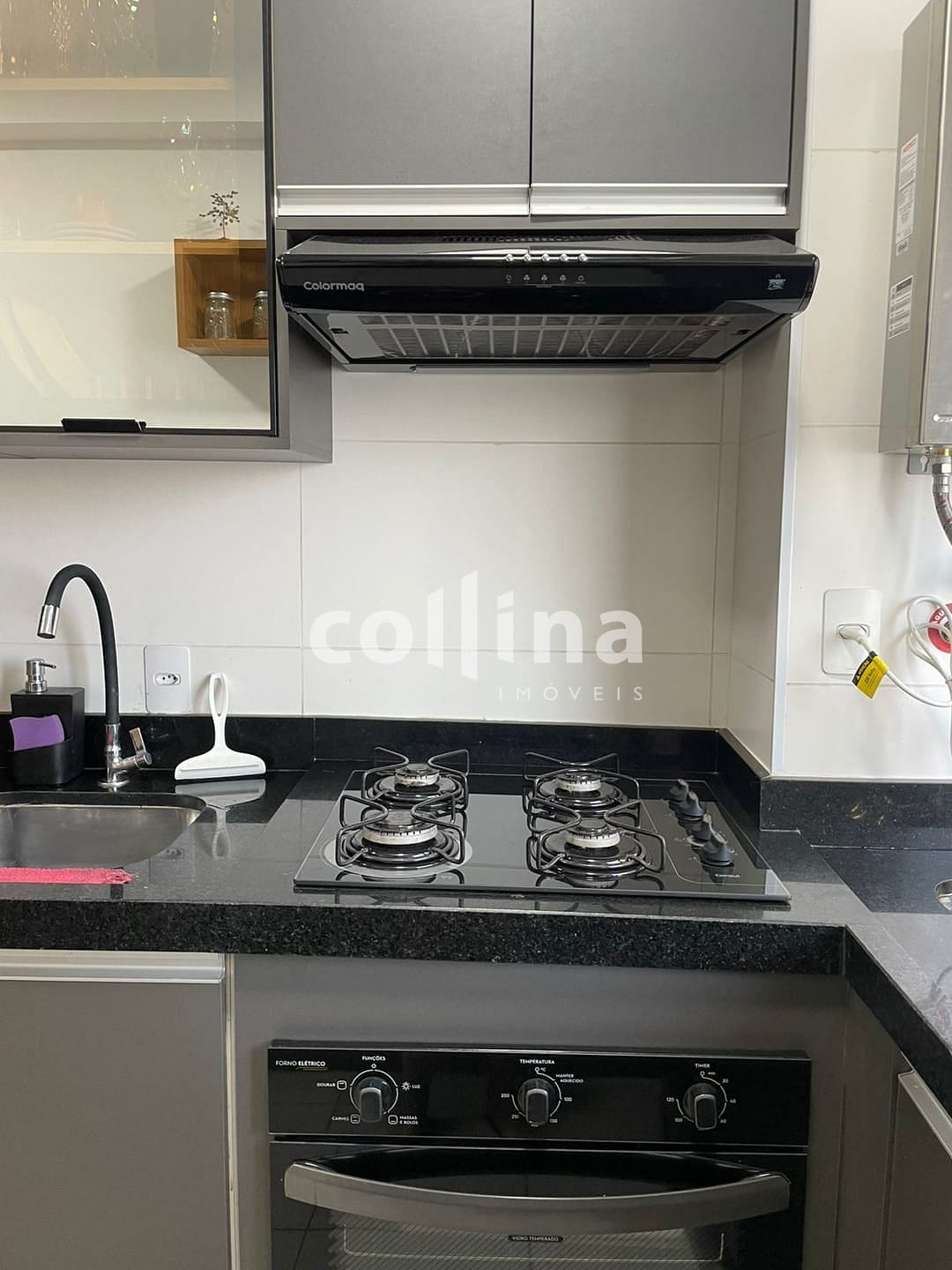 Cozinha: Planejada, equipada com cooktop, forno e aquecedor a gás, garantindo funcionalidade e modernidade