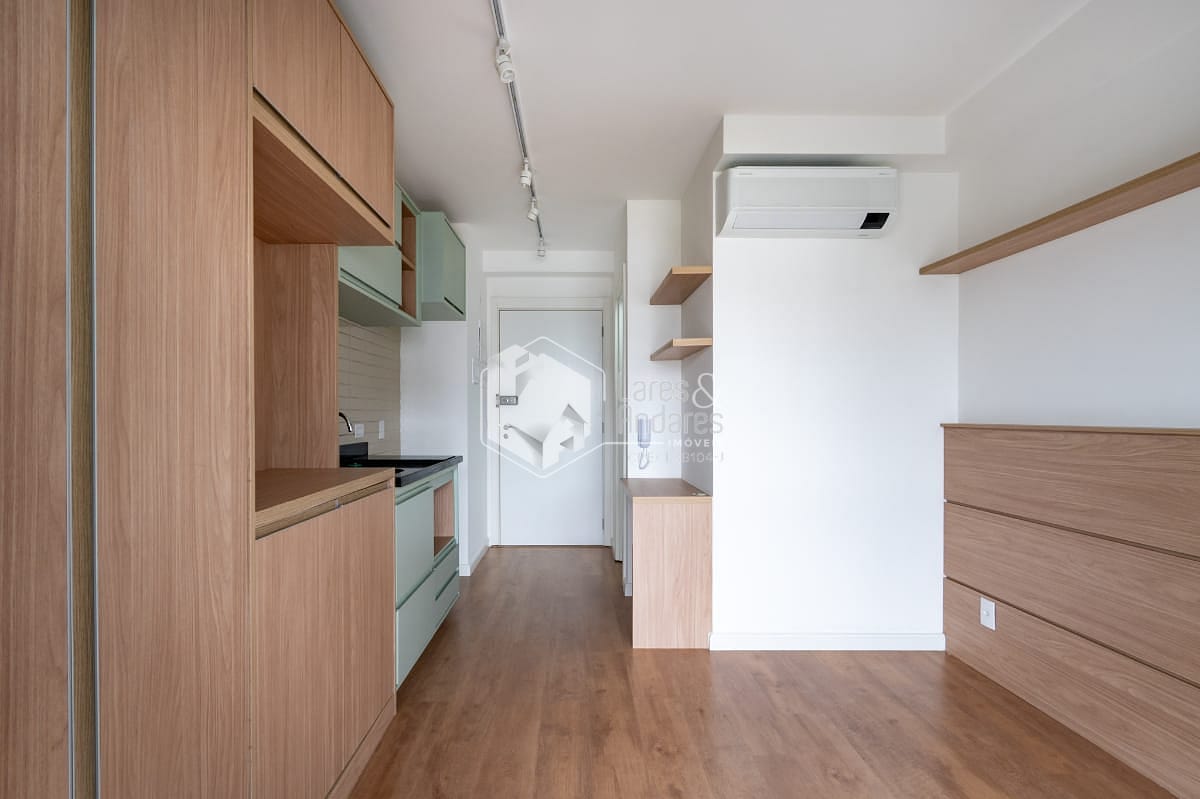 Este estúdio de 22 m² foi planejado para aproveitar cada centímetro com inteligência, ideal para quem busca praticidade sem abrir mão de conforto e bom gosto. A marcenaria planejada traz um toque moderno e funcional, garantindo mais organização e amplitude visual. O ar-condicionado já instalado oferece conforto térmico em todas as estações.