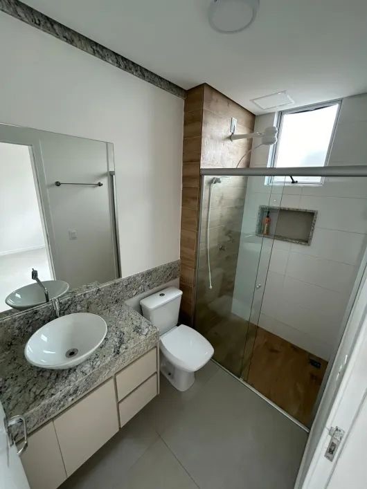 1 suíte com armário, espelho e box em vidro temperado