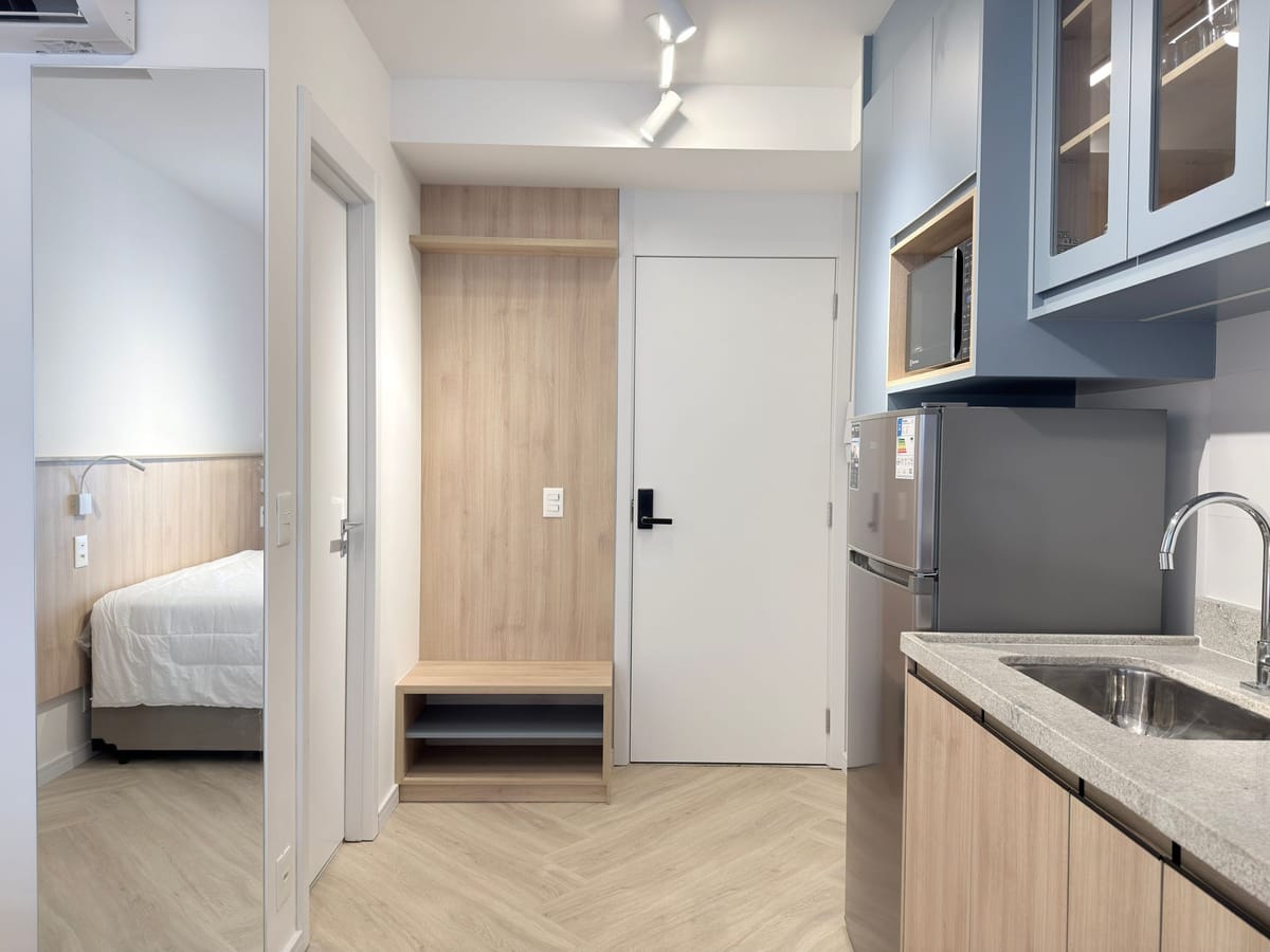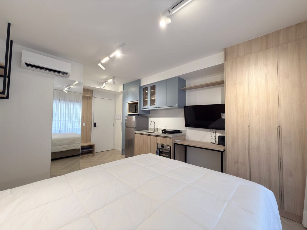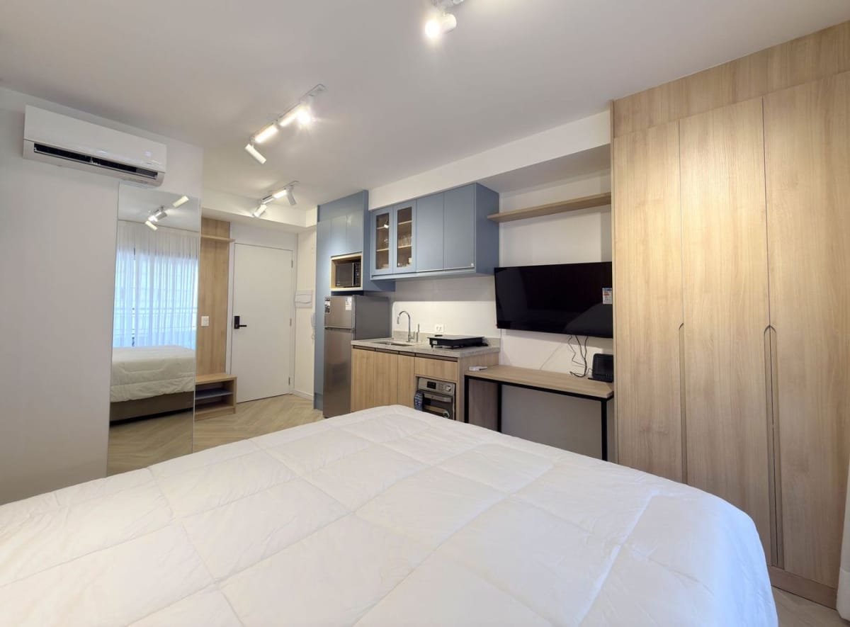 Apartamento mobiliado em localização estratégica no bairro Perdizes! Possui 29 m2 e 1 quarto[s]. Para facilitar o seu dia a dia, o imóvel já vem com tudo pronto para você morar.