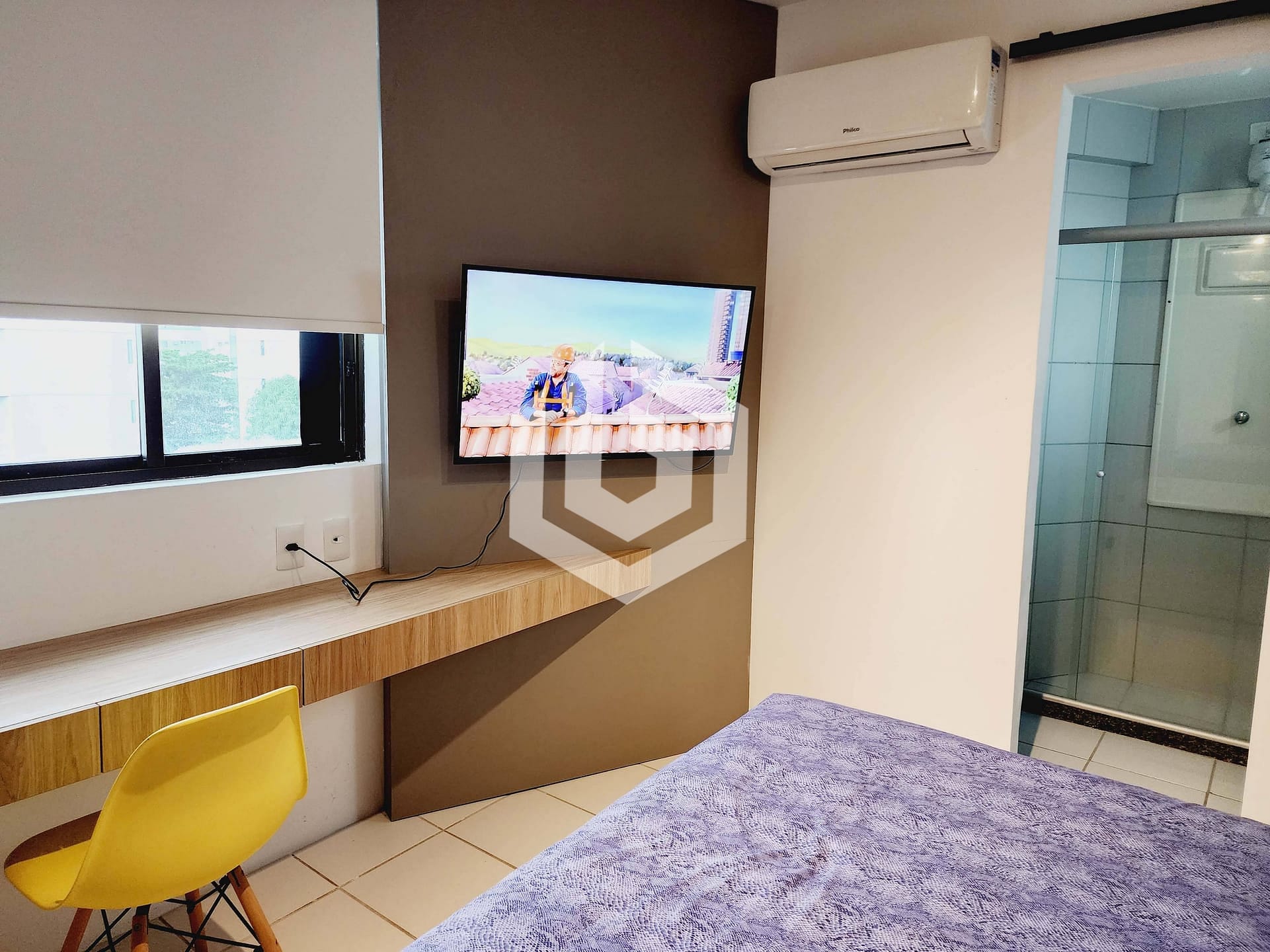 Mobiliado, com: 01 quarto suíte com ar condicionado e armários planejado, TV, Home Office;