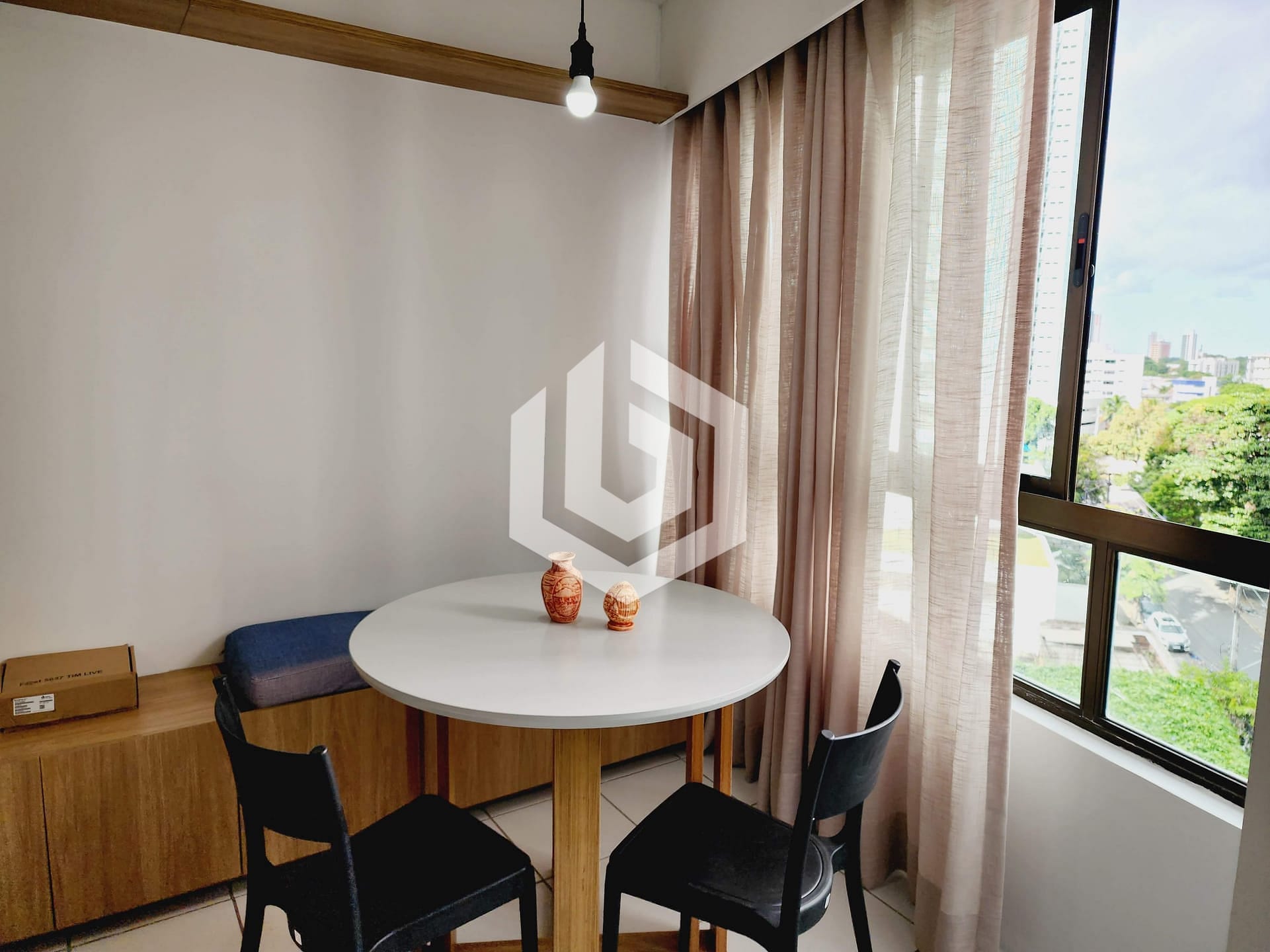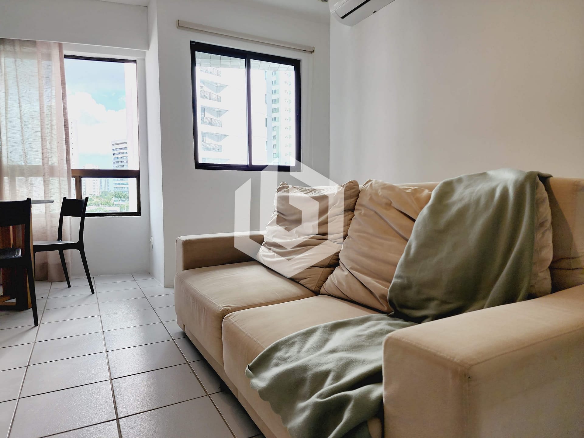 Sala ampla, finamente decorada, com excelente iluminação natural, TV e ar condicionado