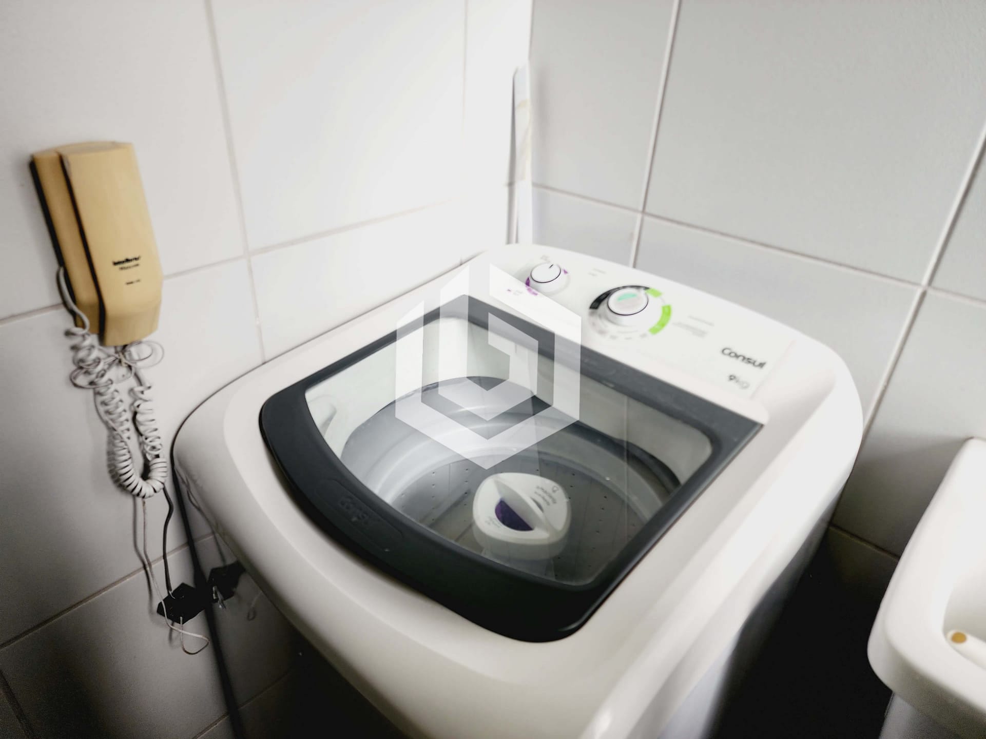 Área de serviço com máquina de lavar