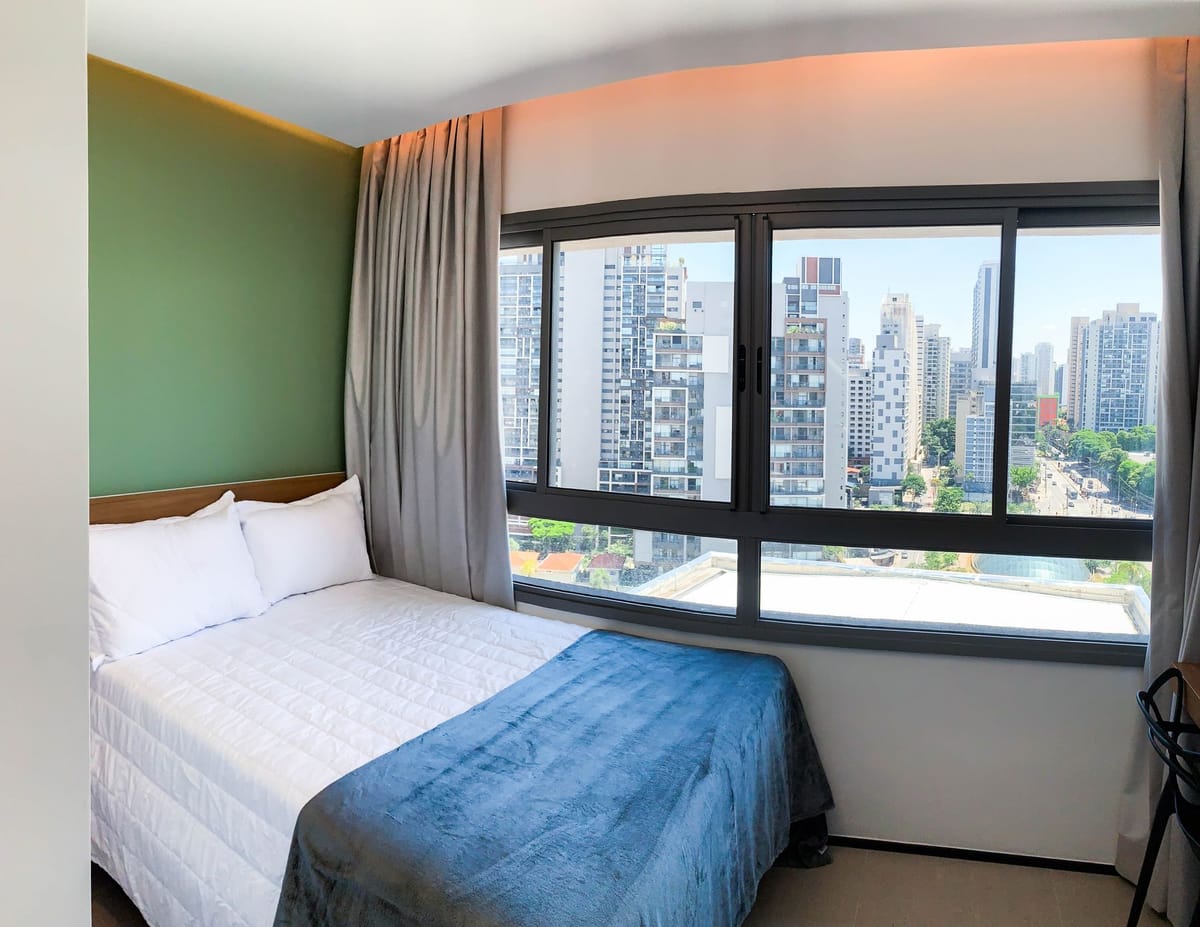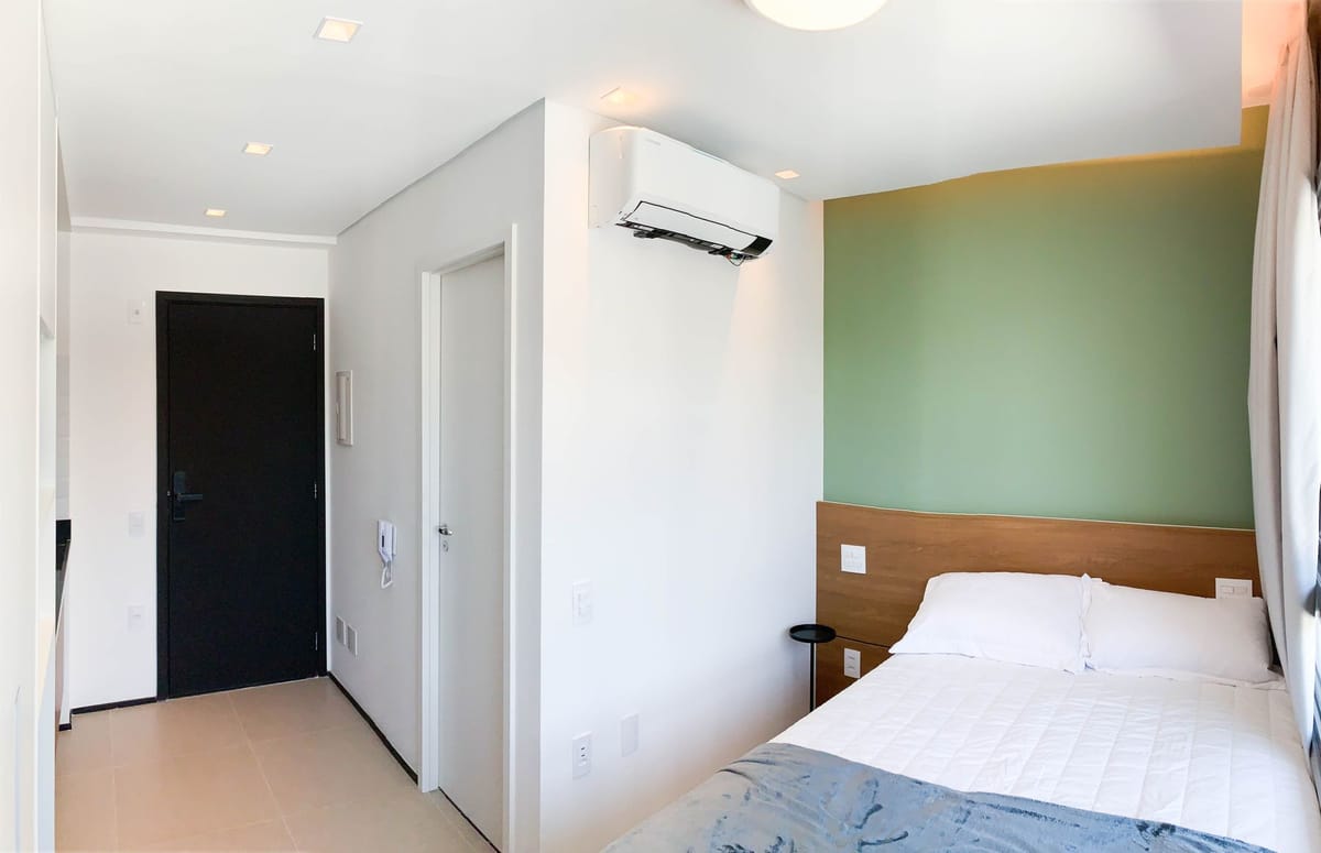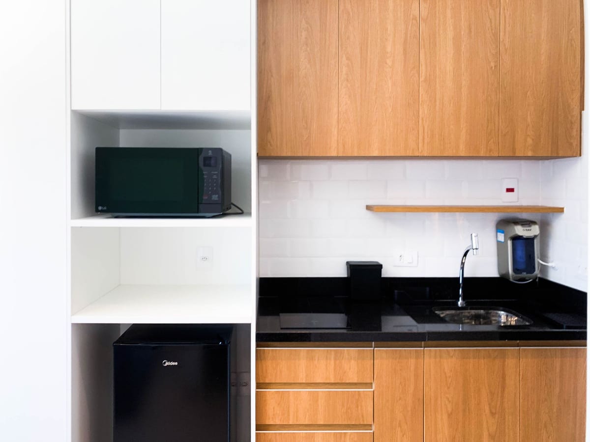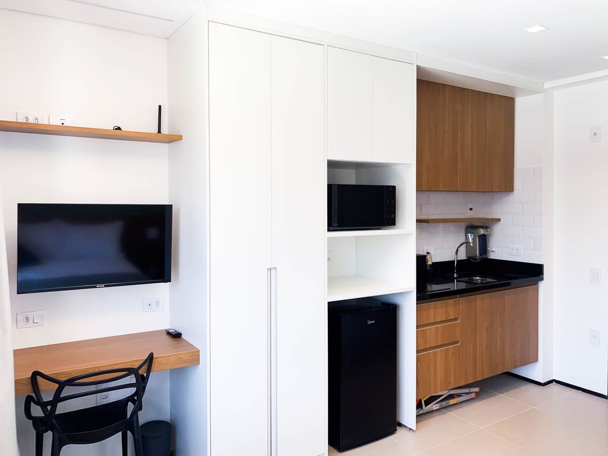 Apartamento mobiliado em localização estratégica no bairro Santo Amaro! Possui 18 m2 e 1 quarto[s]. Para facilitar o seu dia a dia, o imóvel já vem com tudo pronto para você morar.