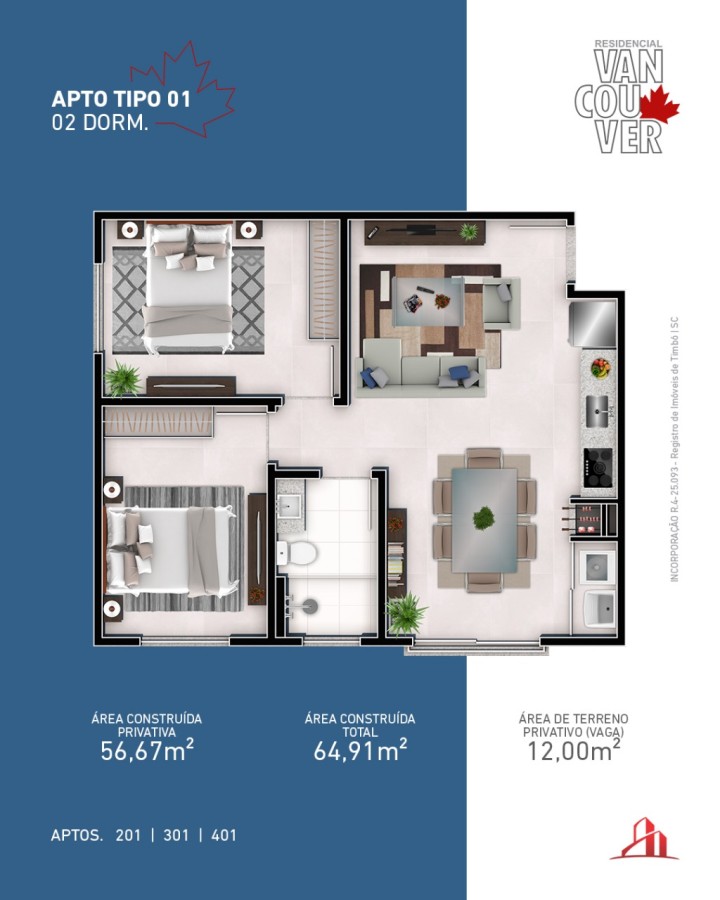 Imagine viver em um espaço onde cada detalhe foi pensado para proporcionar conforto e praticidade. Este apartamento na planta, situado no encantador bairro Araponguinha, em Santa Catarina, é o cenário perfeito para você iniciar uma nova jornada de vida com estilo e comodidade. Com uma área total de 64,91 m², cada metro quadrado deste imóvel foi planejado para atender às suas necessidades e oferecer um ambiente acolhedor e funcional. Ao entrar neste futuro lar, você será recebido por espaços que convidam ao relaxamento e à convivência, ideais para transformar seus sonhos em realidade.