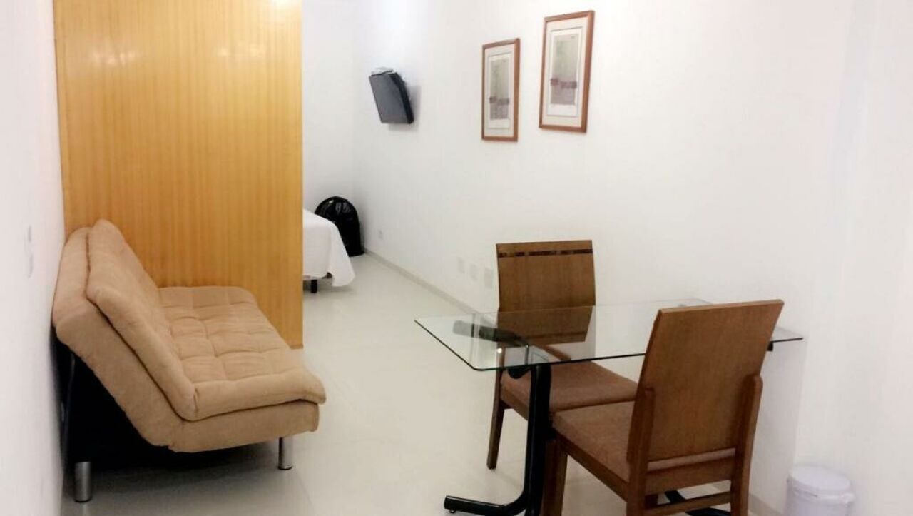 O apartamento é mobiliado, conta com ar-condicionado, TV a cabo, interfone e 1 vaga de garagem.