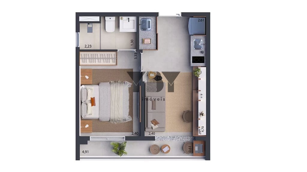 Apartamento à Venda com 1 quartos, 29 m² por R$ 383.000