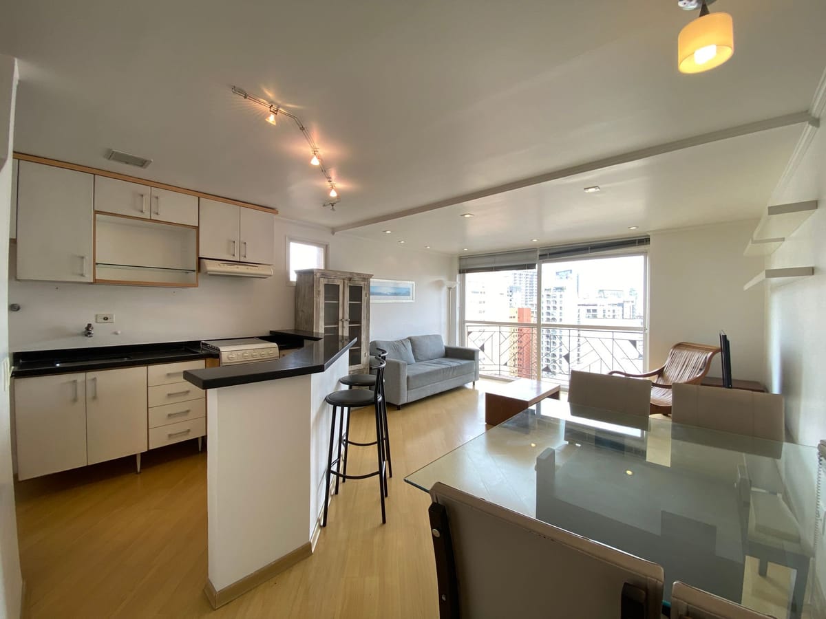 Apartamento mobiliado em localização estratégica no bairro Vila Olímpia! Possui 69 m2 e 1 quarto[s]. Para facilitar o seu dia a dia, o imóvel já vem com tudo pronto para você morar.