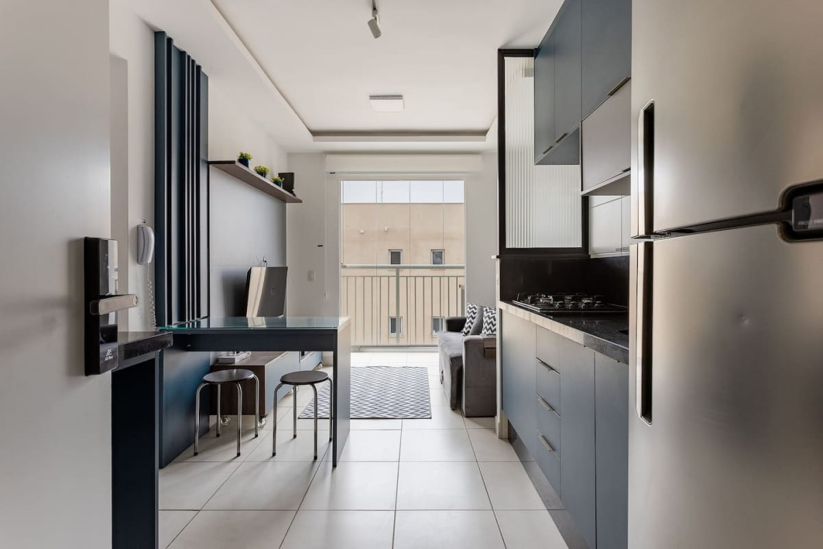 Apartamento mobiliado em localização estratégica no bairro Barra Funda! Possui 27 m2 e 2 quarto[s]. Para facilitar o seu dia a dia, o imóvel já vem com tudo pronto para você morar.