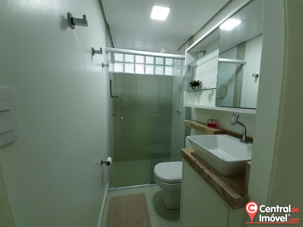 Dispõe de 02 dormitórios climatizados, sala de estar e jantar integradas, cozinha, área de serviço, banheiro social, lavabo e 01 vaga de garagem.
