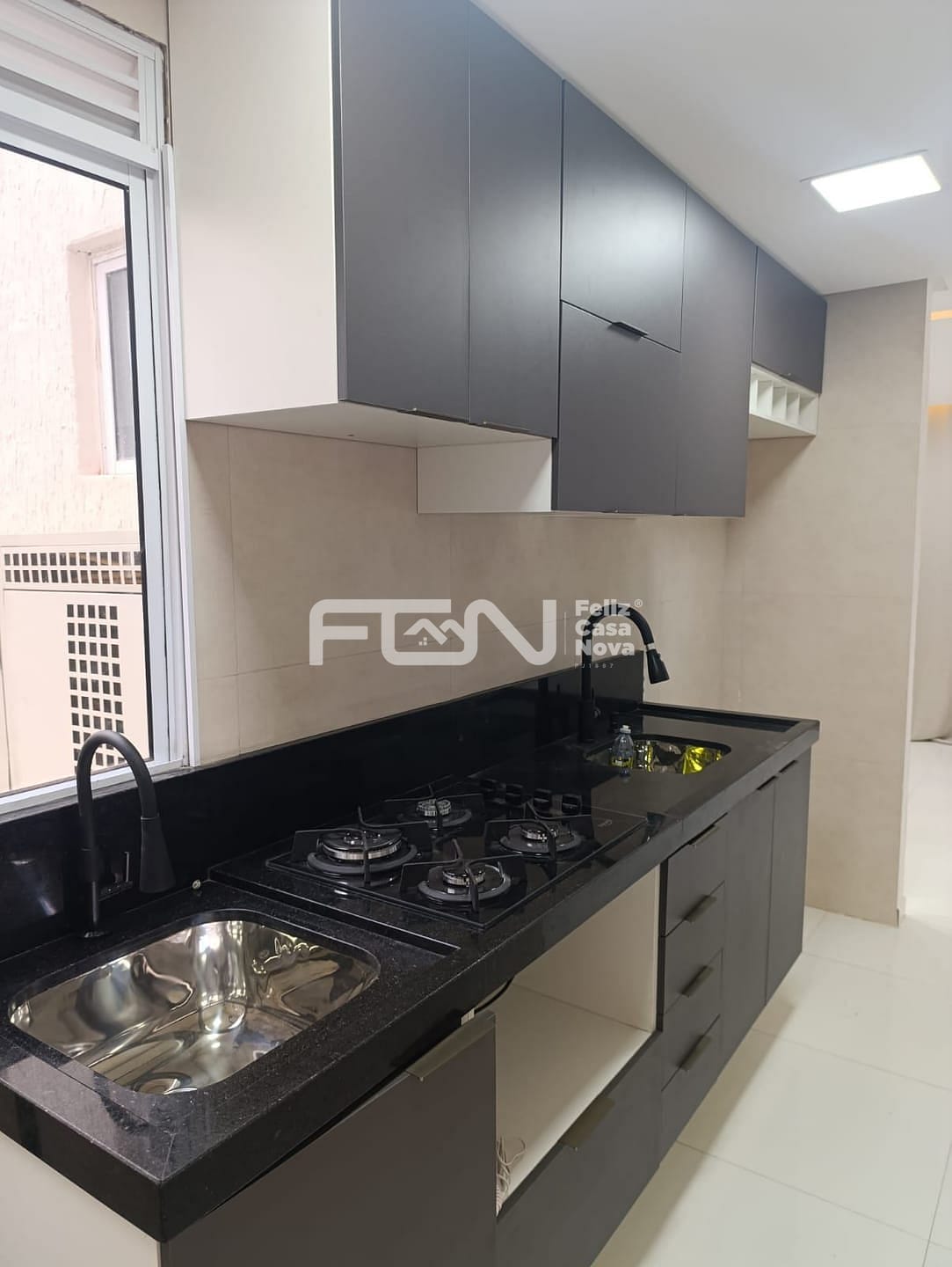 Cozinha com Armários panejados e Fogão Cooktop