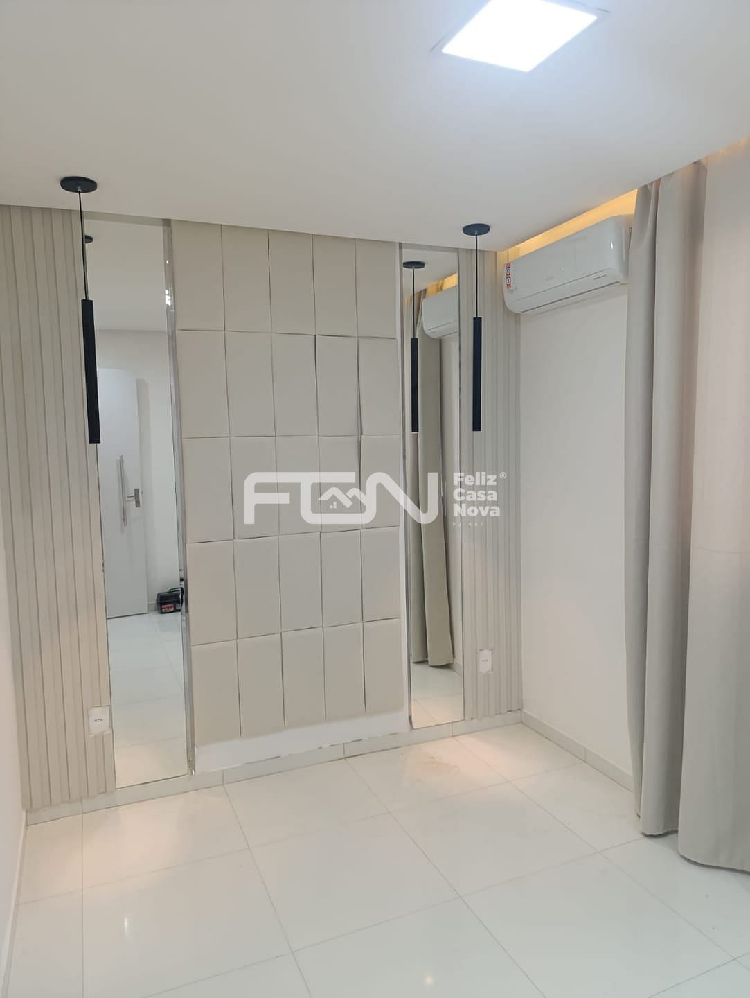 Quarto de casal com Cabeceira até o Teto, Espelhos e Ar-Condicionado
