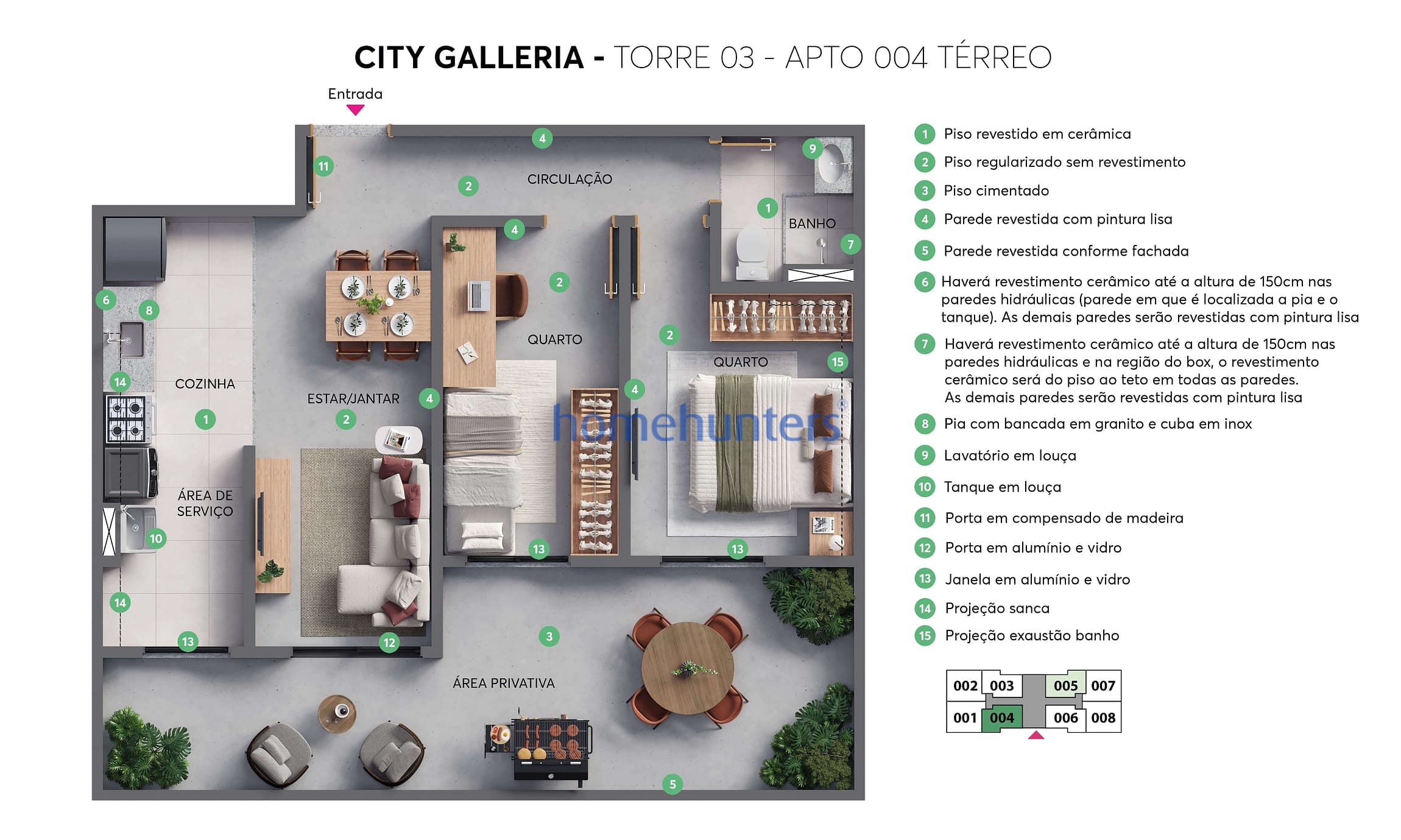Diferenciais: opções com varanda, suíte e unidades no térreo com área privativa (garden) de até 27,73 m².