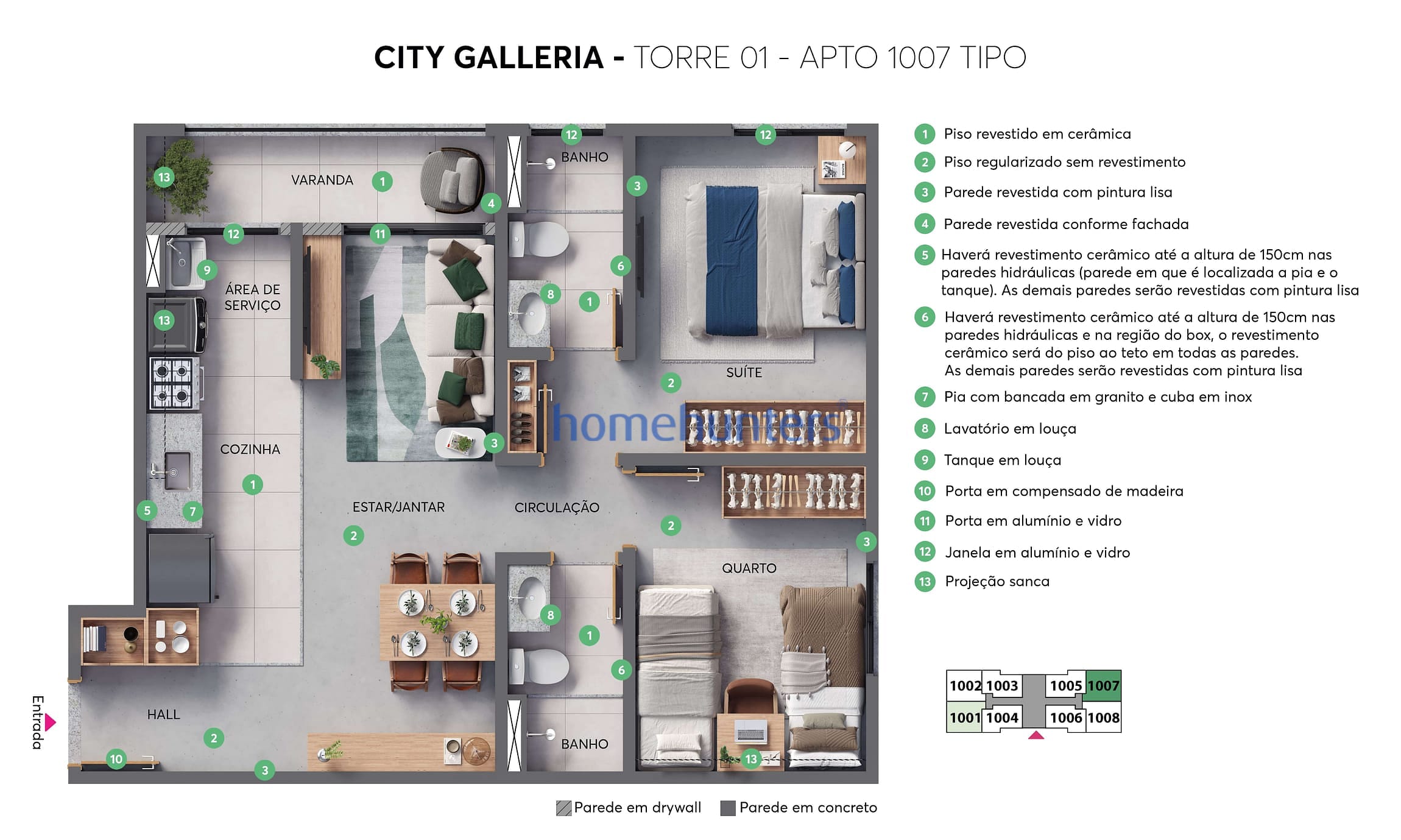 Além da solidez de uma construtora com 45 anos de história, o City Galleria oferece acesso ao programa Mundo da Casa, permitindo a personalização de acabamentos como pisos, bancadas e revestimentos ainda durante a fase de obra.