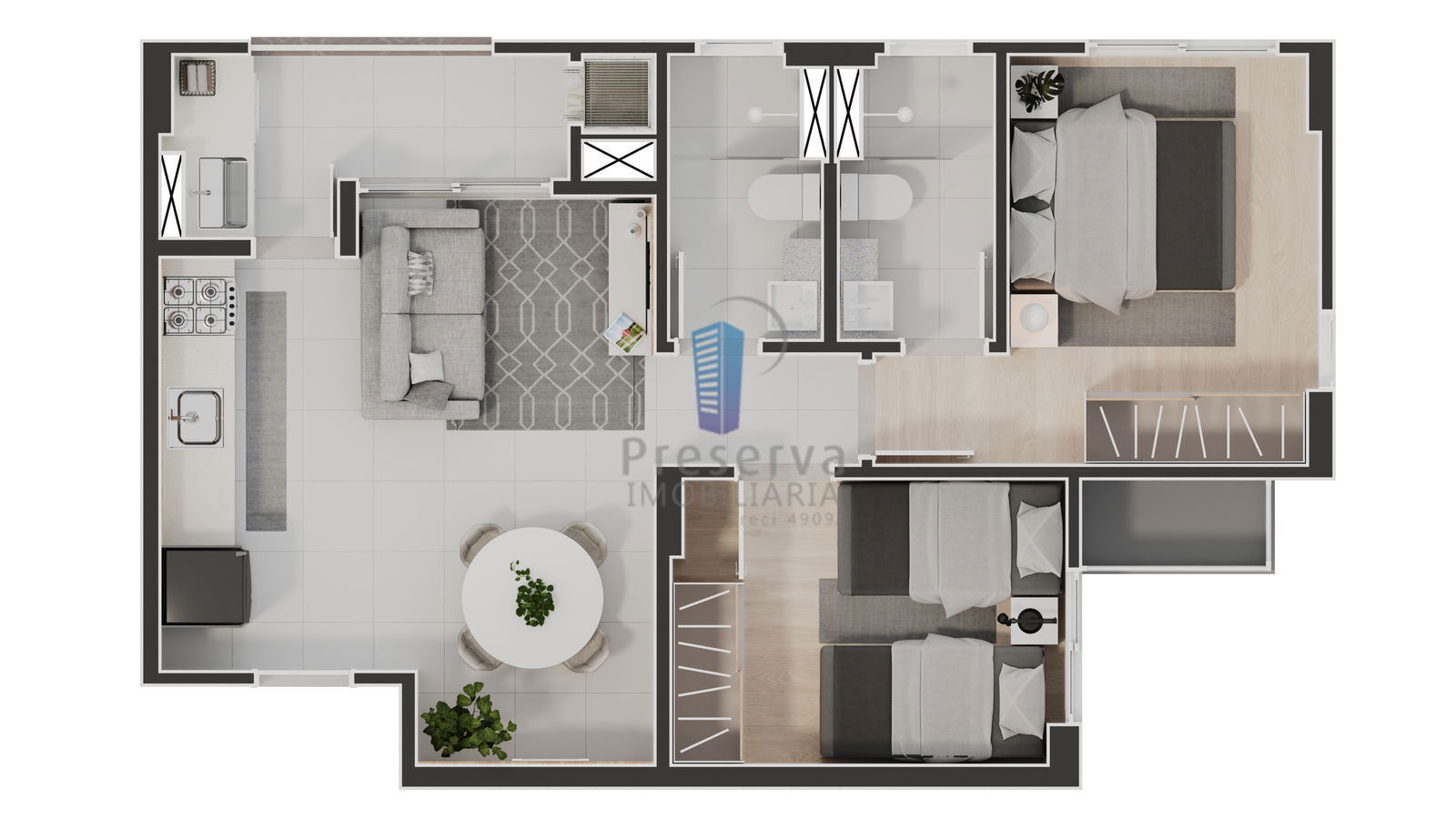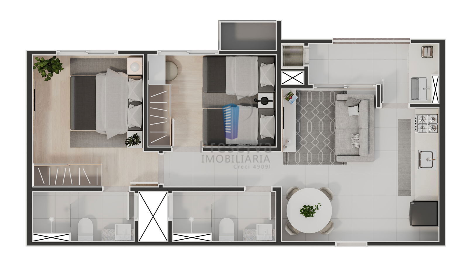 - Área privativa de 58,66m2