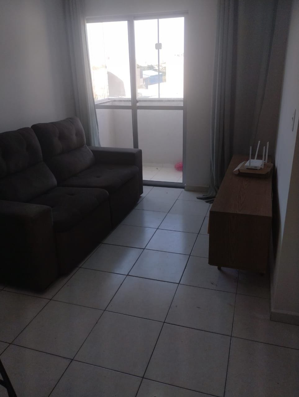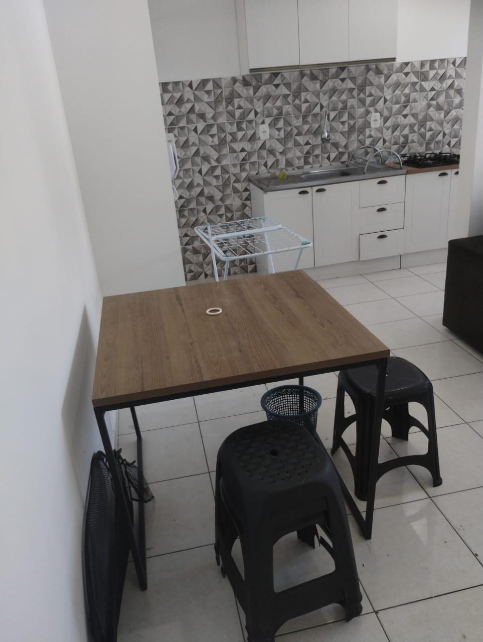 * Sala de TV e Jantar com sofá, rack para TV, mesa com banquetas;