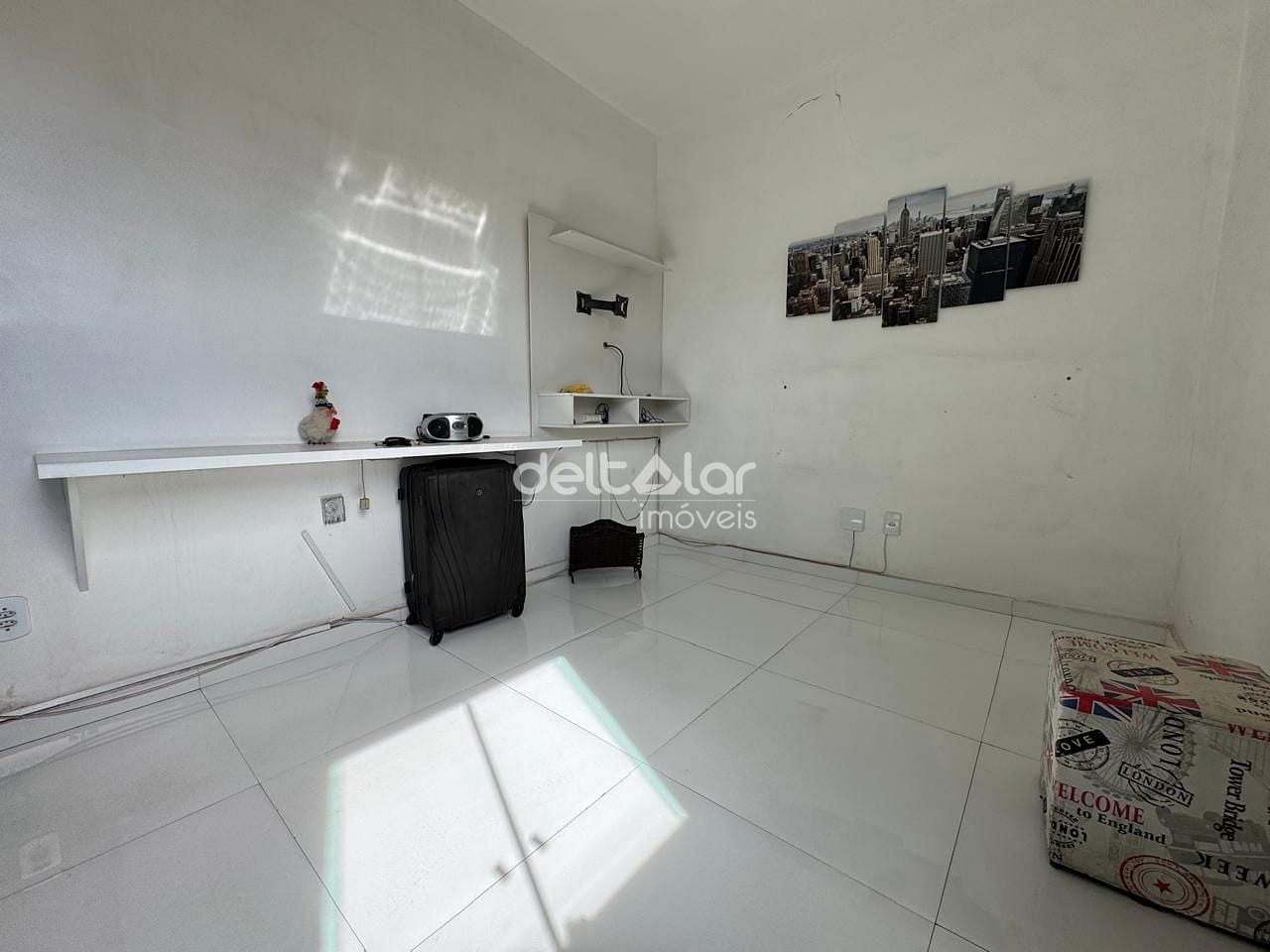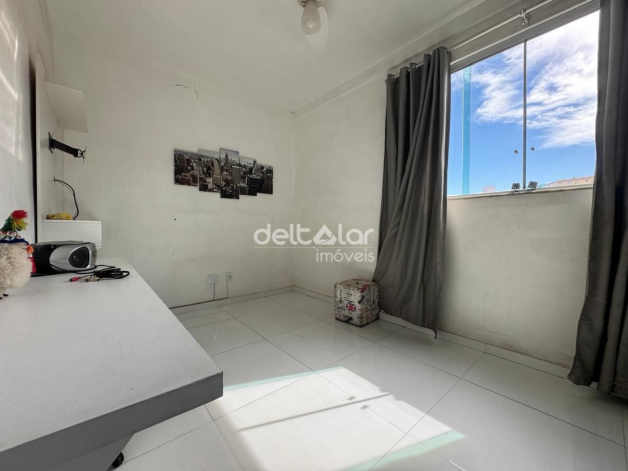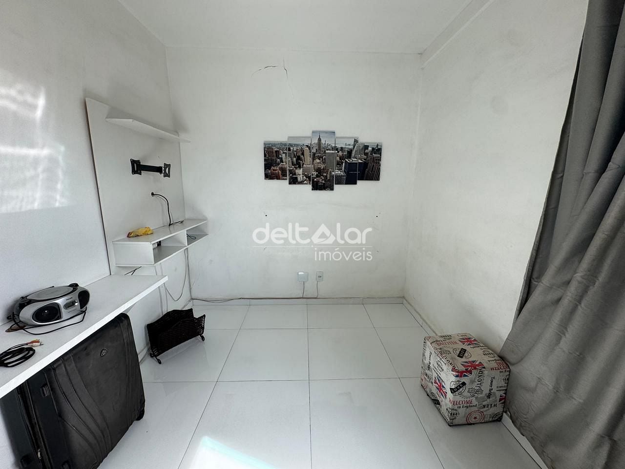 Sala de estar integrada ou para dois ambientes, oferecendo espaço para sofá e mesa de jantar. Cozinha funcional com área de serviço integrada ou separada, possibilitando organização no cotidiano
