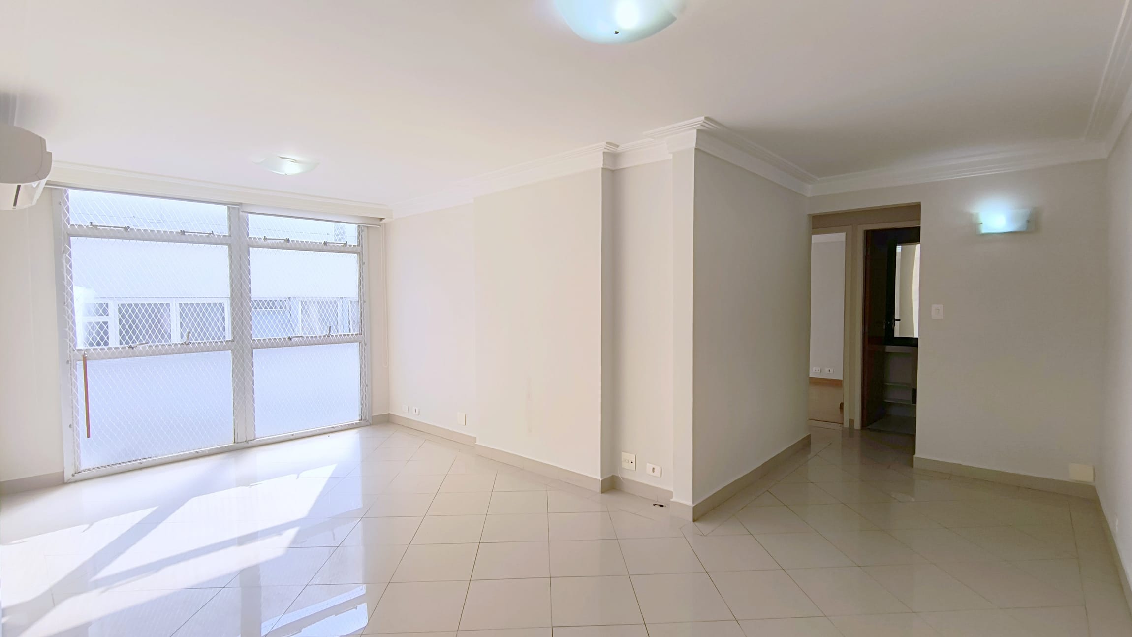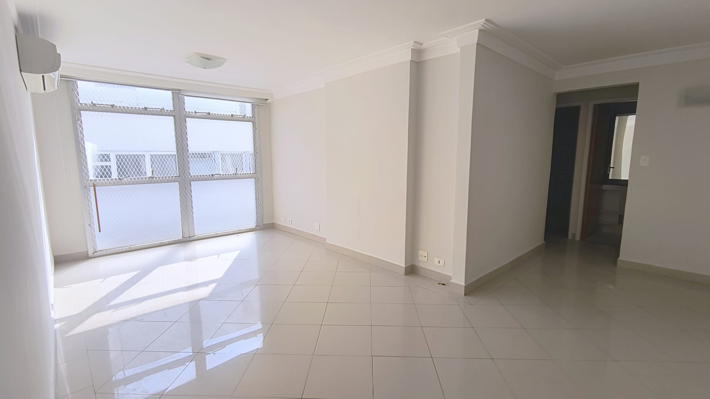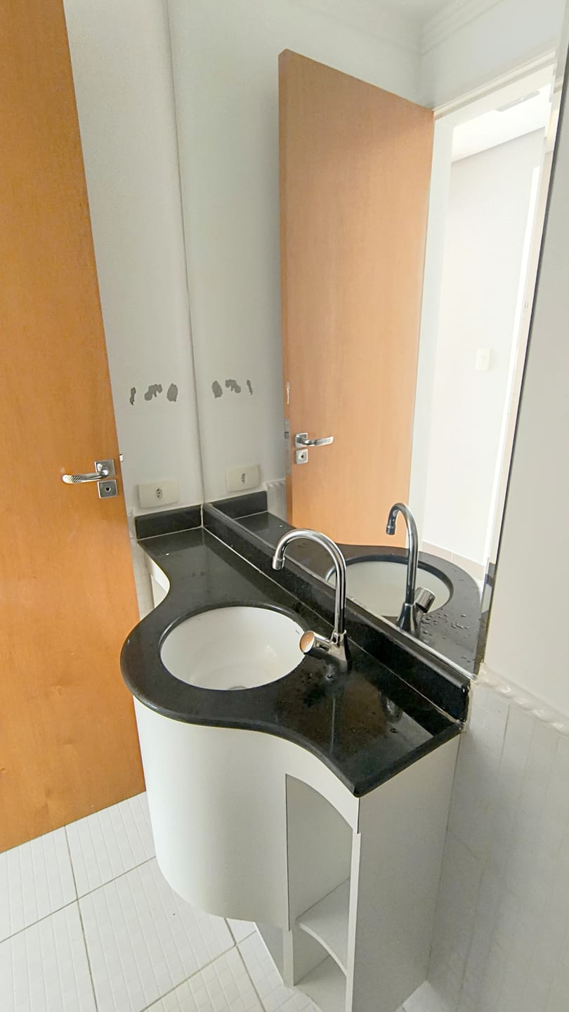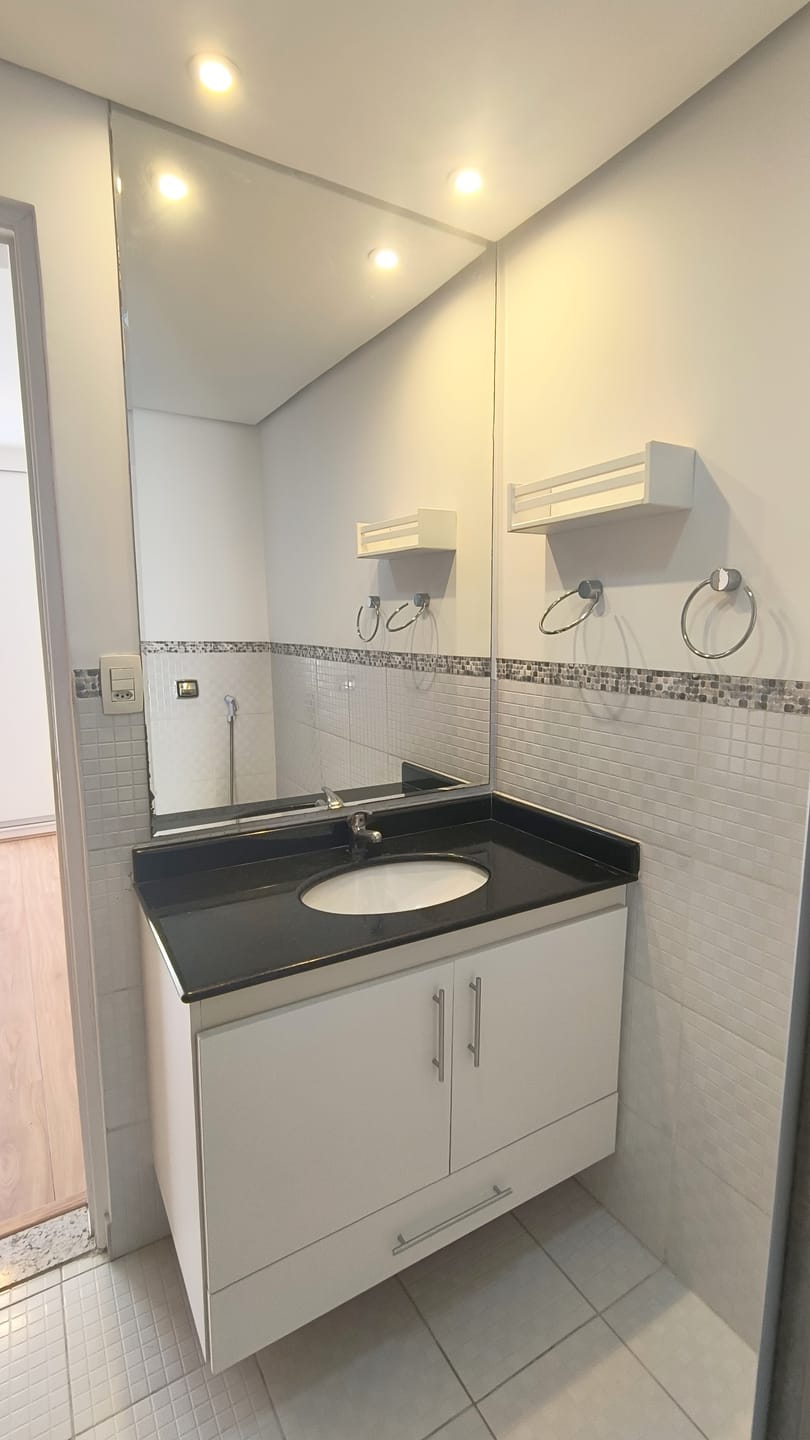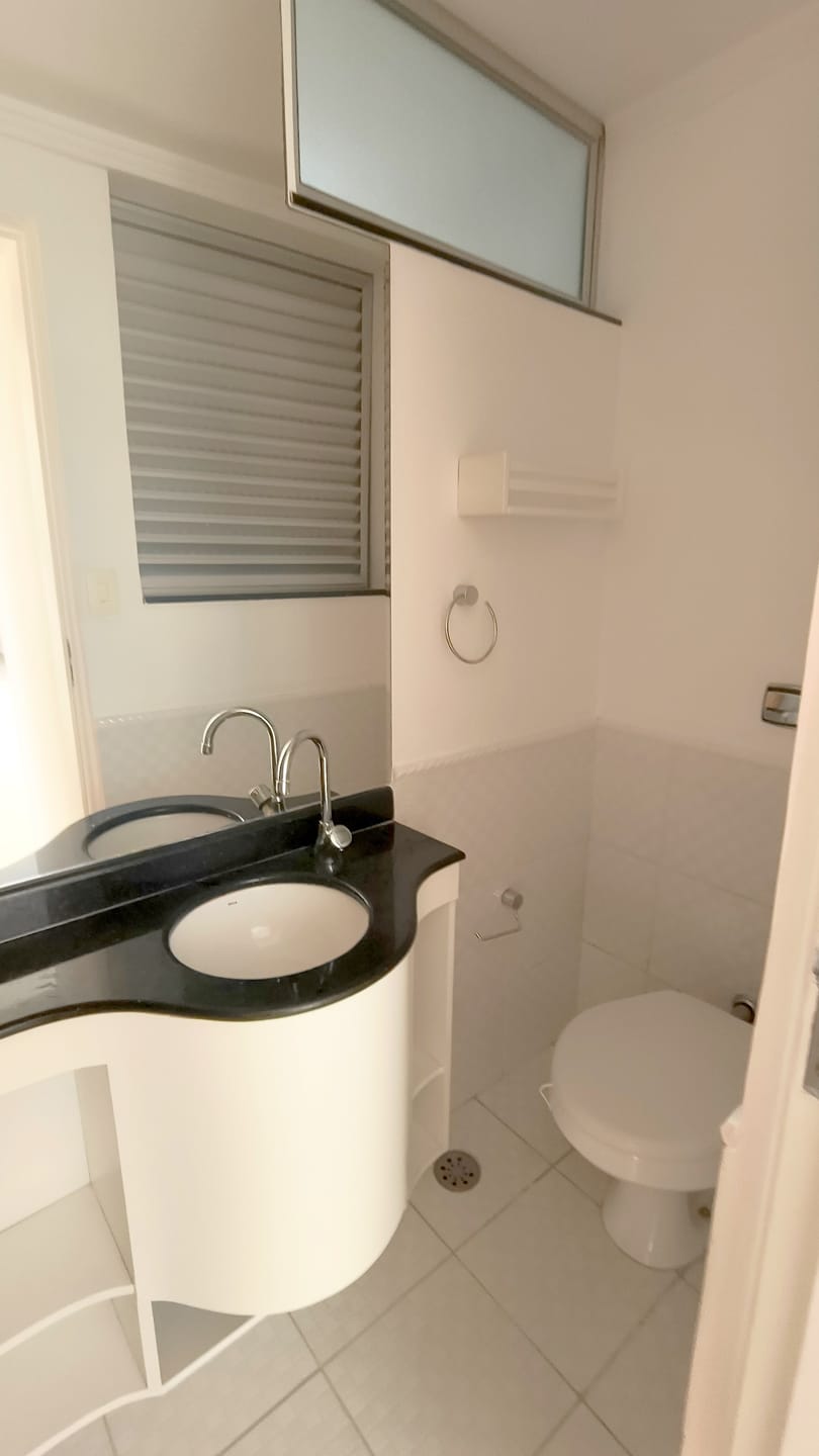 O apartaamento está reformado, ar condicionado na sala e suíte, com sala em "L" para dois ambientes, dois dormitórios, um deles suíte, ambos com armários, lavabo, cozinha espaçosa repleta de armários, área de serviços com banheiro e quarto e uma vaga de garagem.