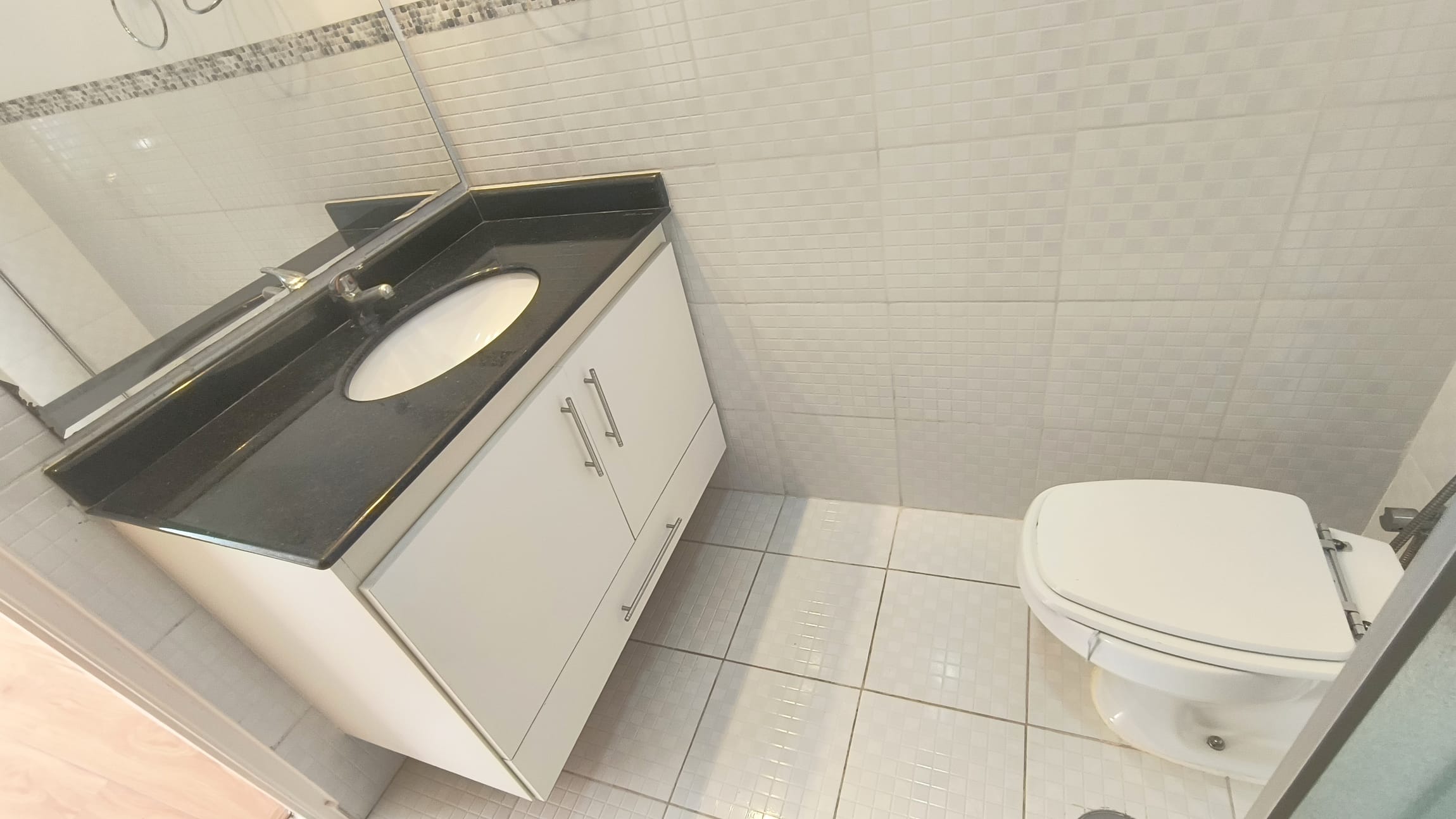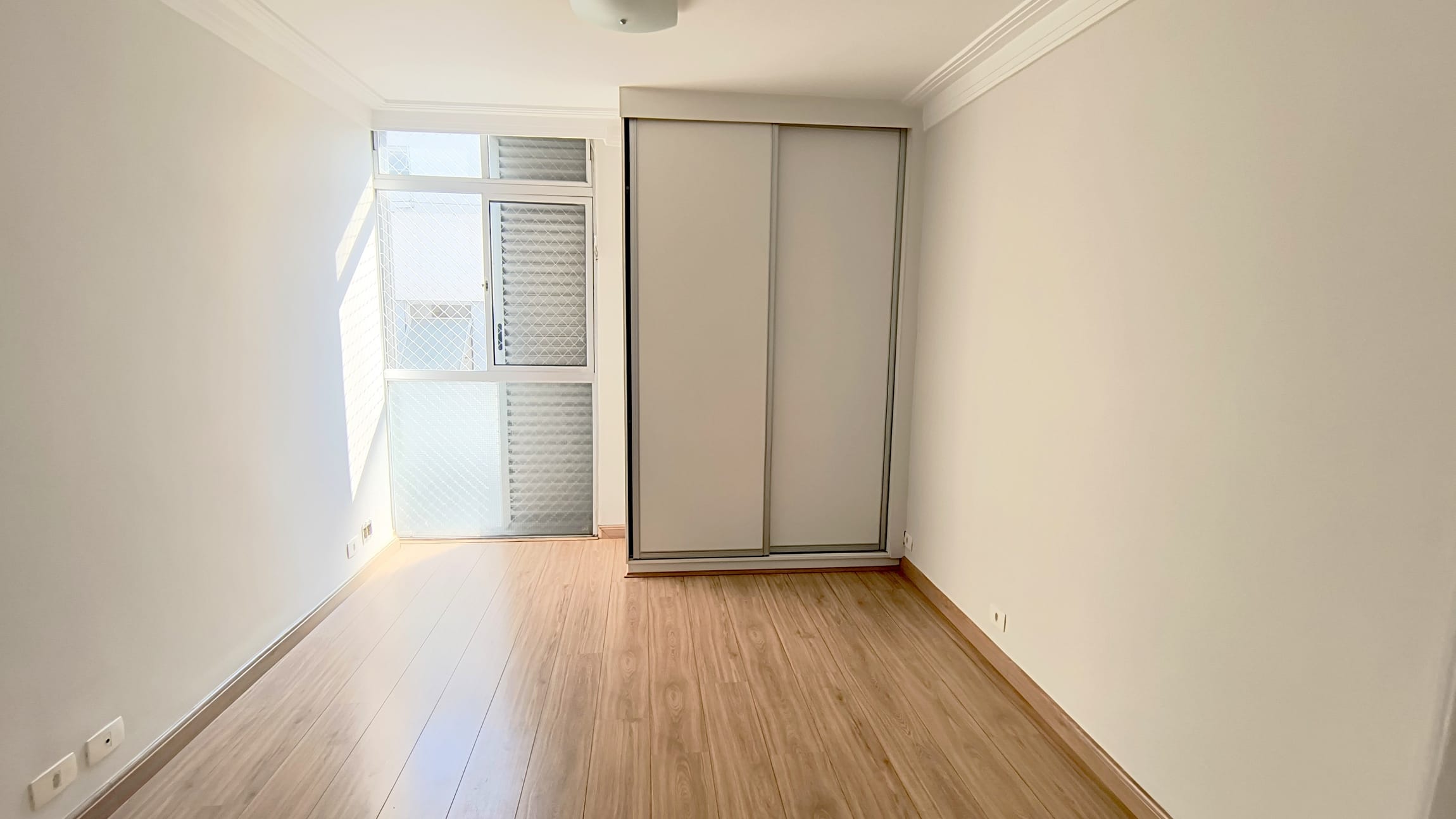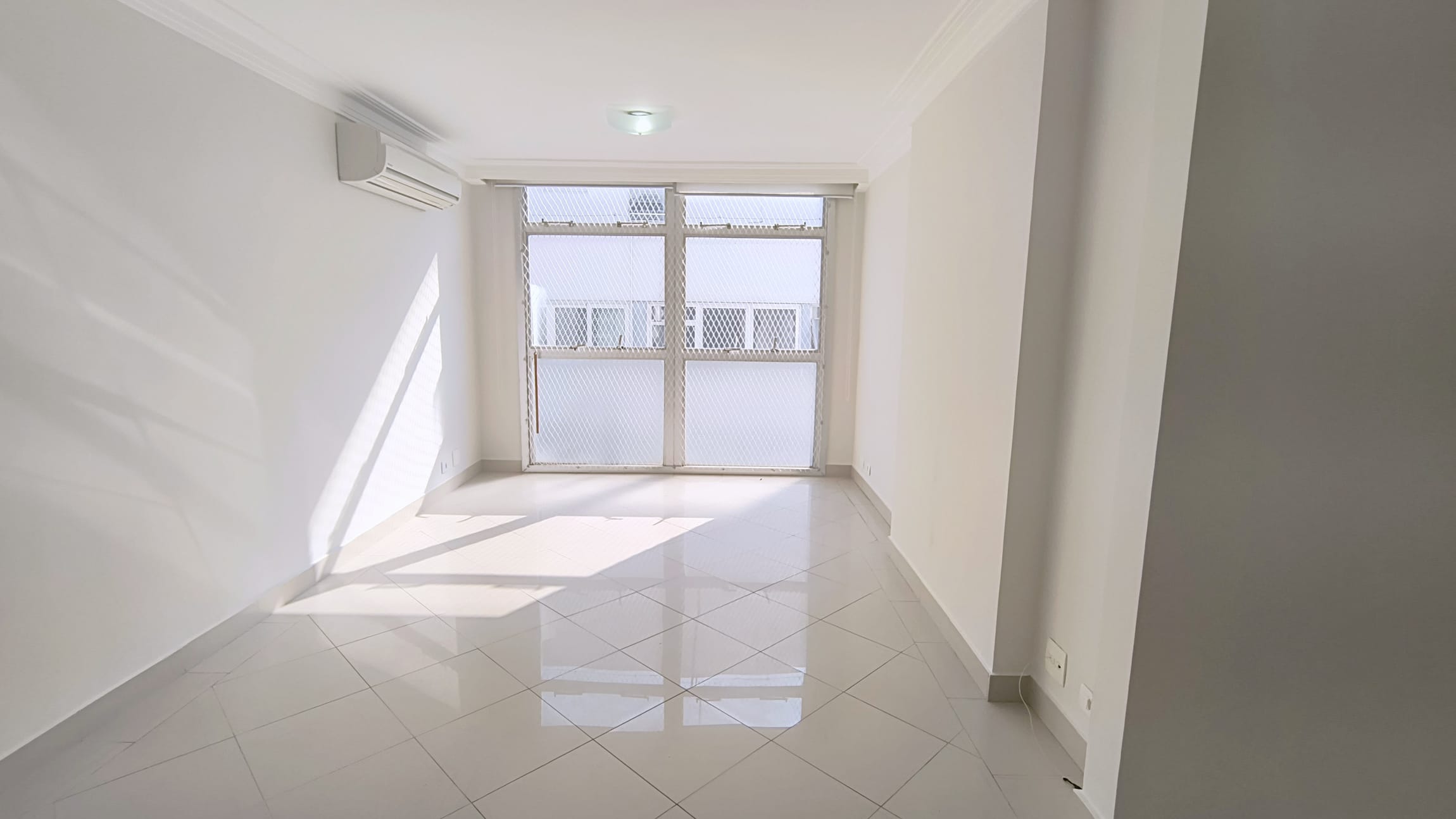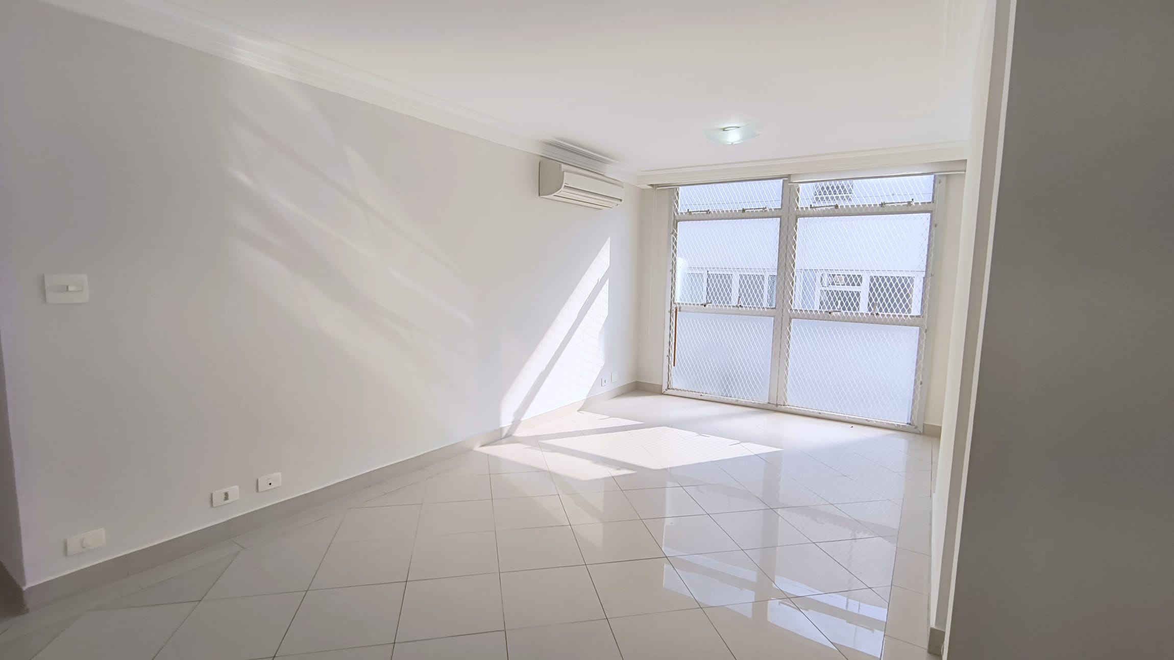 O apartaamento está reformado, ar condicionado na sala e suíte, com sala em "L" para dois ambientes, dois dormitórios, um deles suíte, ambos com armários, lavabo, cozinha espaçosa repleta de armários, área de serviços com banheiro e quarto e uma vaga de garagem.