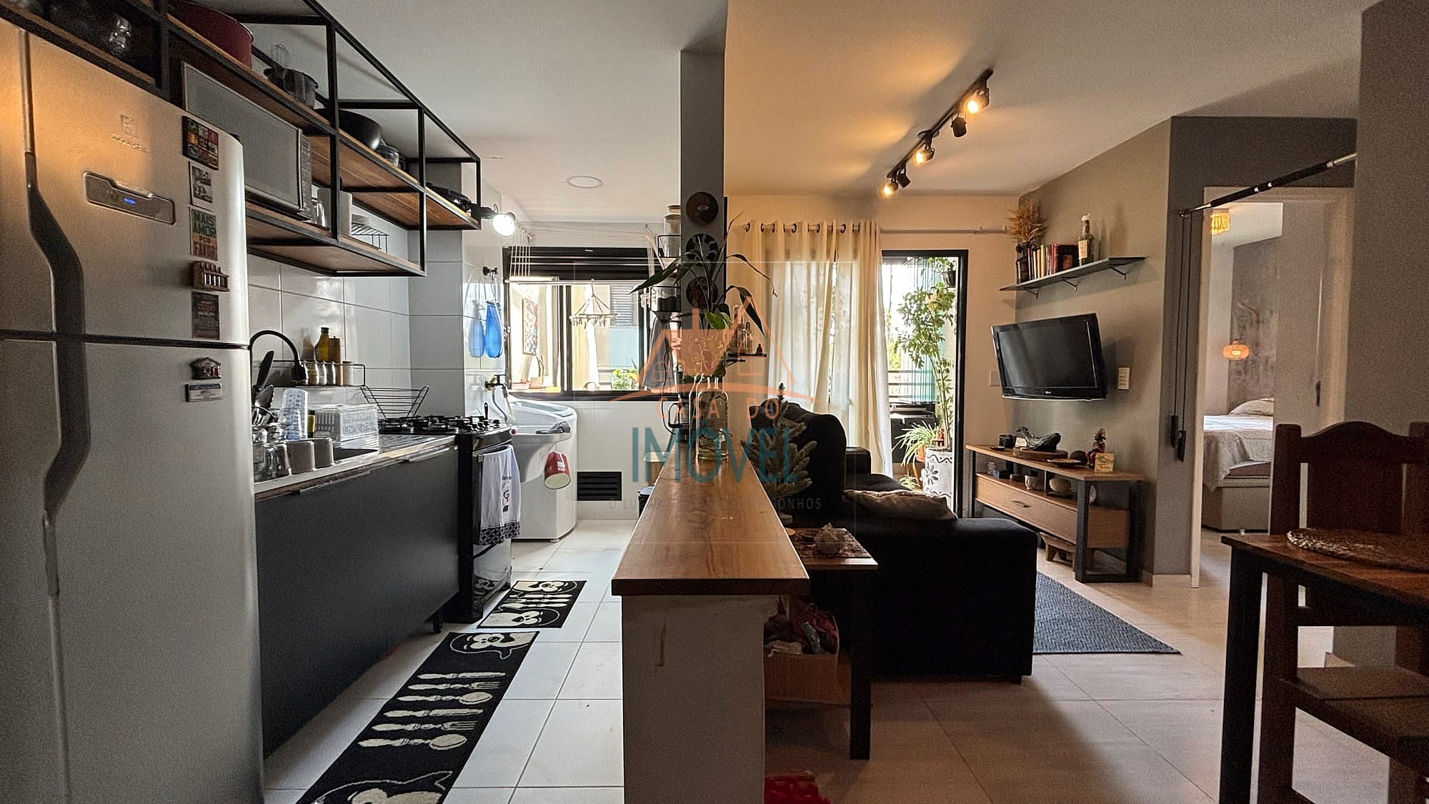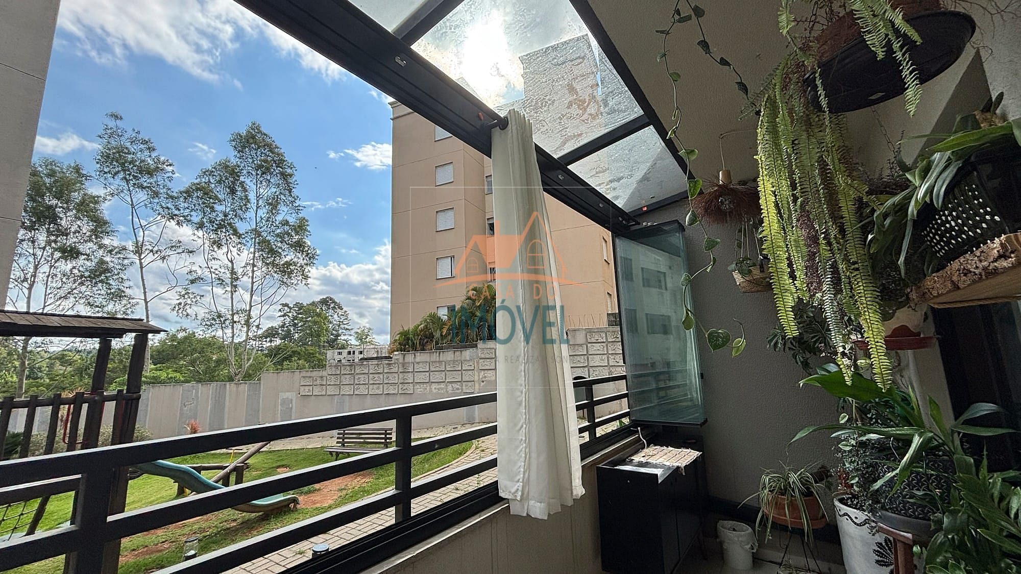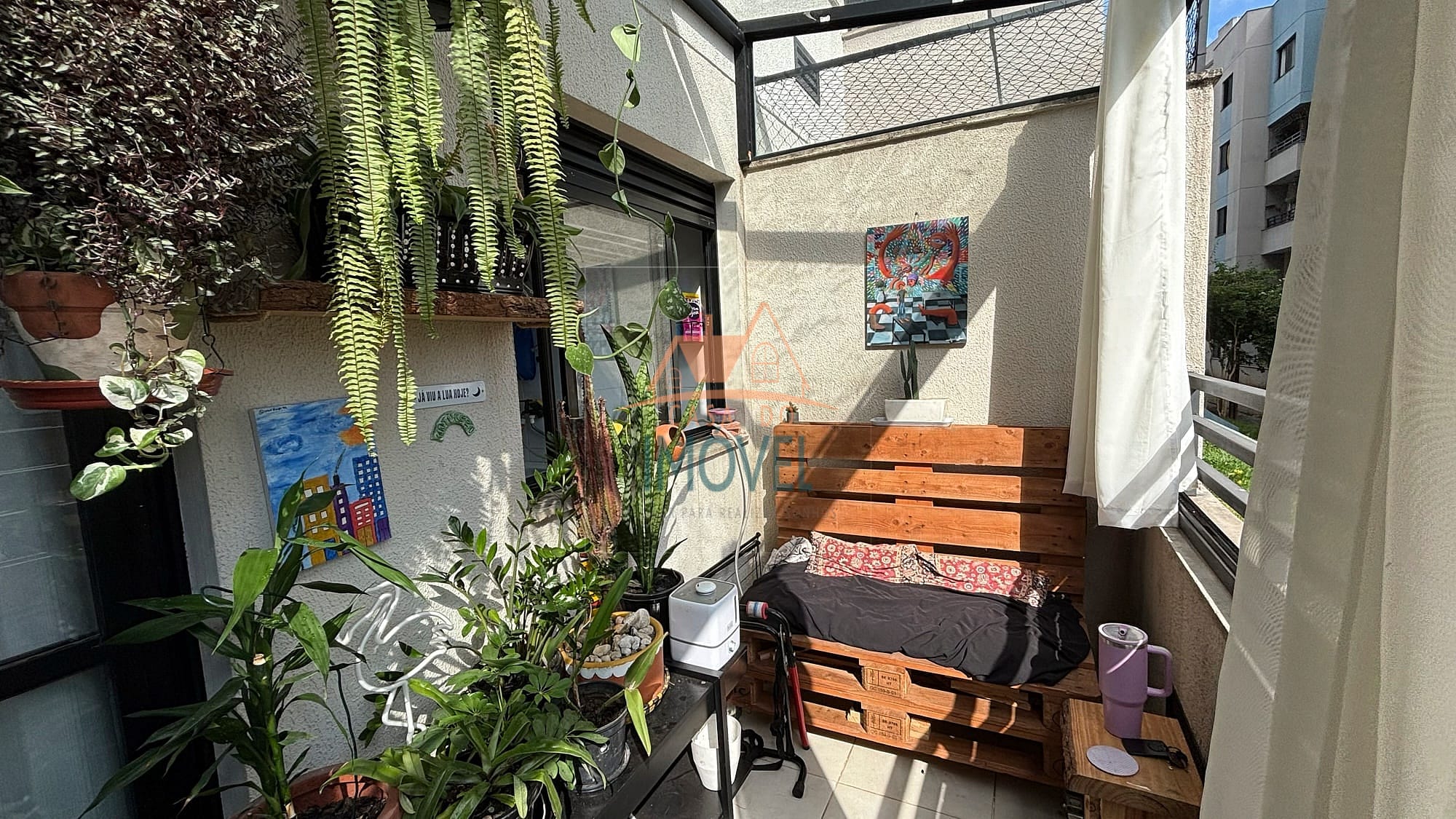 O apartamento possui infraestrutura completa, com sala que acessa a varanda, cozinha americana que possui cooktop e forno embutidos, área de serviço, ambas com armários planejados, um quarto que possui roupeiro planejado e o outro quarto possui um roupeiro de solteiro, um banheiro que possui armário planejado e box e uma vaga de garagem. Os ambientes contam com piso laminado, aquecimento elétrico e as janelas e sacada possuem telas de proteção, garantindo conforto e praticidade. A unidade está localizada no andar térreo contando com uma ampla varanda com fechamento em vidro articulado e um banco, proporcionando um ambiente agradável e aconchegante.