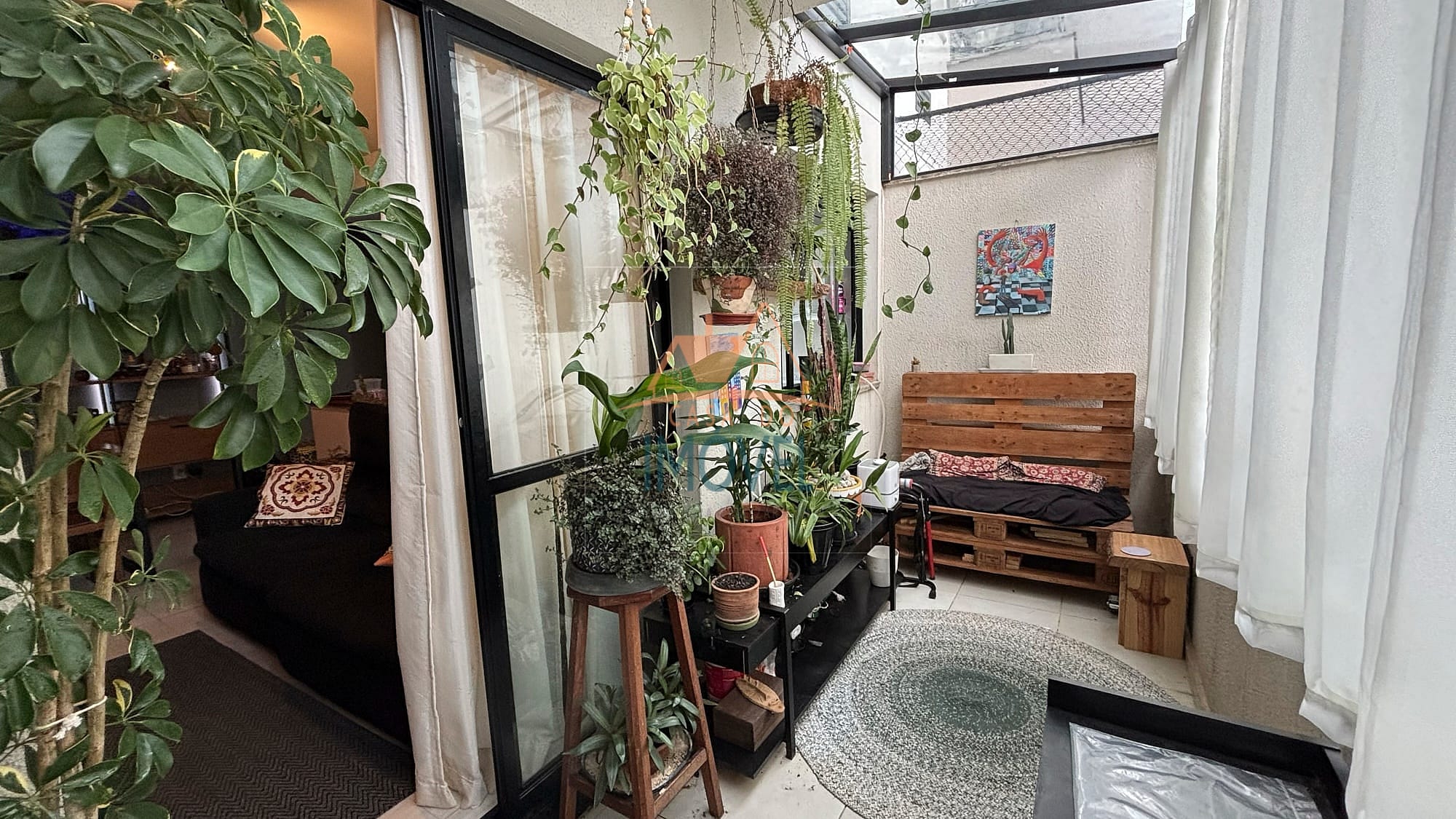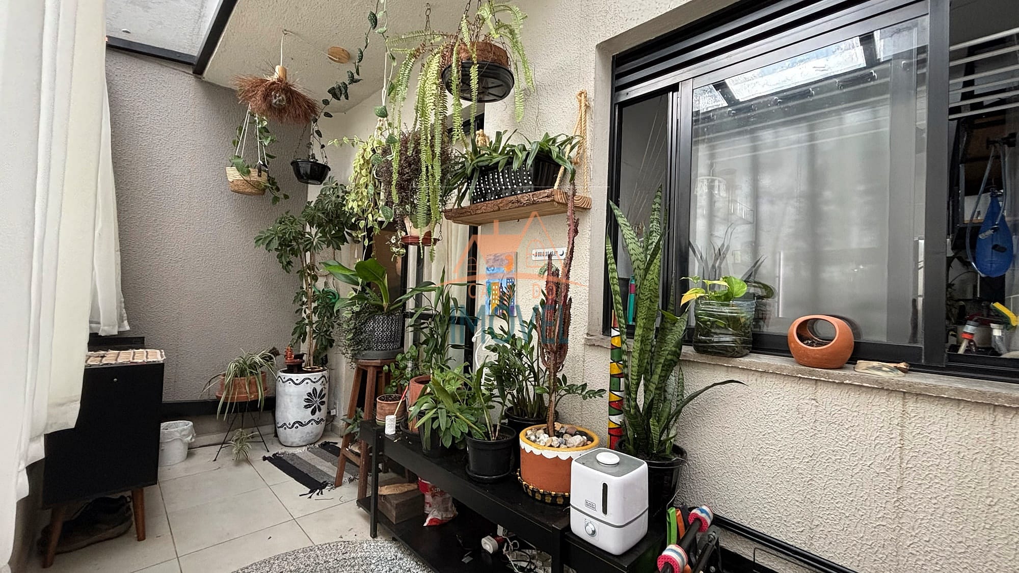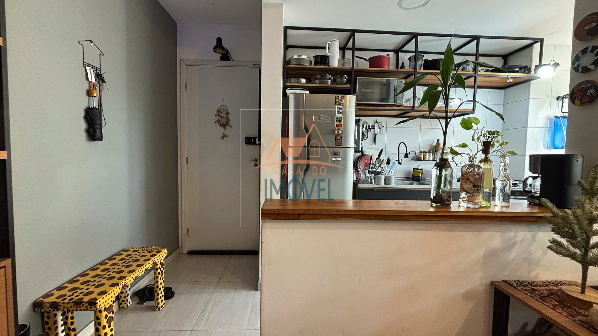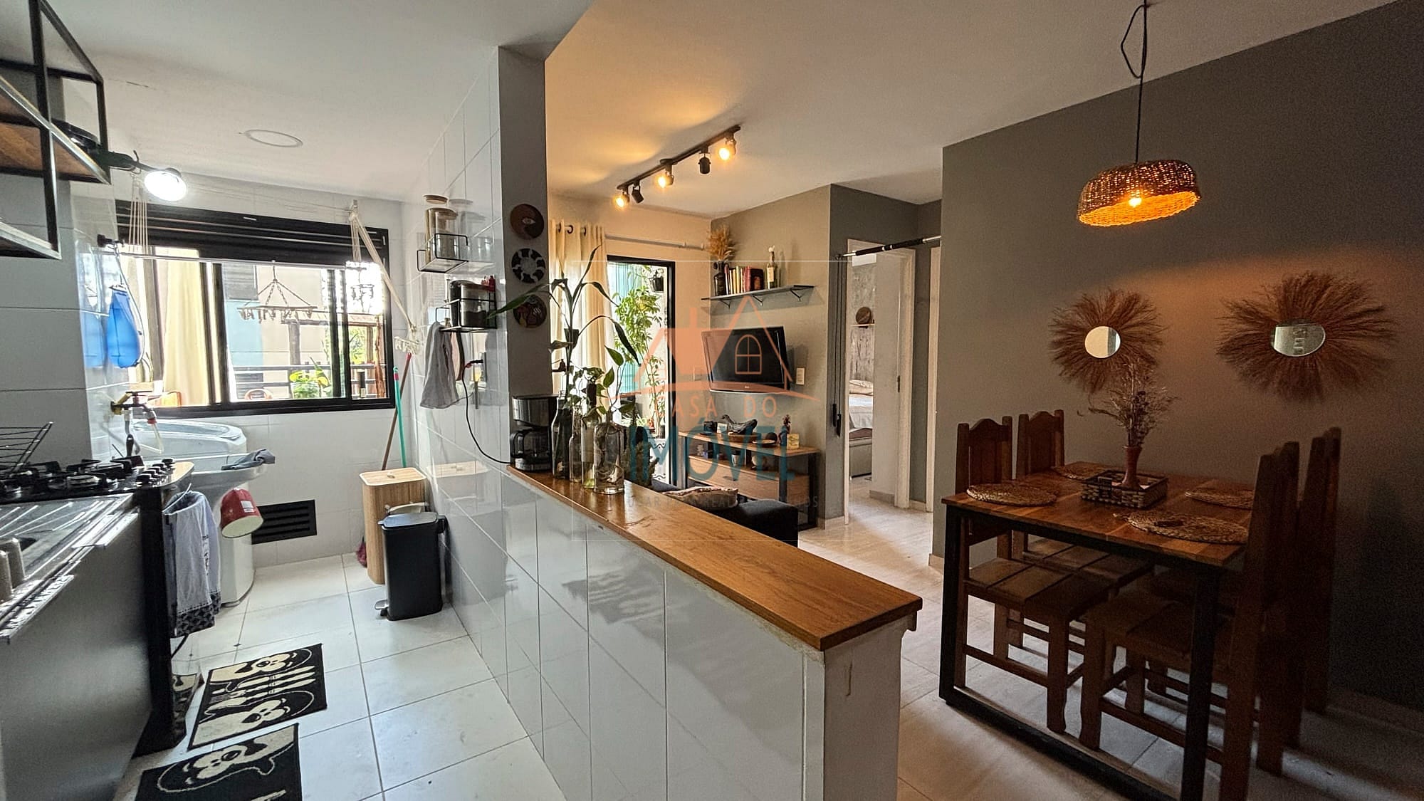 O apartamento possui infraestrutura completa, com sala que acessa a varanda, cozinha americana que possui cooktop e forno embutidos, área de serviço, ambas com armários planejados, um quarto que possui roupeiro planejado e o outro quarto possui um roupeiro de solteiro, um banheiro que possui armário planejado e box e uma vaga de garagem. Os ambientes contam com piso laminado, aquecimento elétrico e as janelas e sacada possuem telas de proteção, garantindo conforto e praticidade. A unidade está localizada no andar térreo contando com uma ampla varanda com fechamento em vidro articulado e um banco, proporcionando um ambiente agradável e aconchegante.