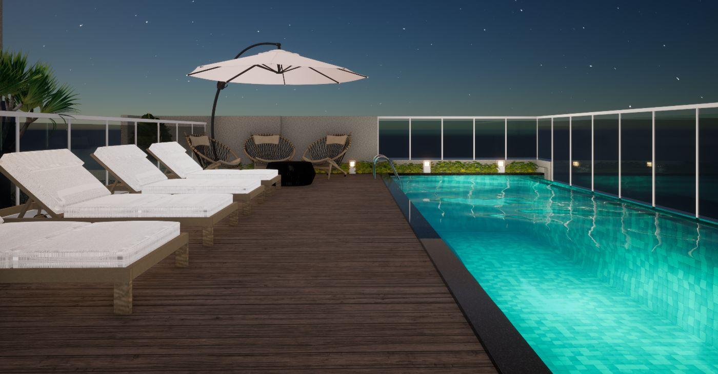 LAZER COMPLETO NO ROOF TOP COM PISCINA COM BORDA INFINITA, CHURRASQUEIRA, SALÃO DE FESTAS,ESPAÇO GOURMET COWORKING, ACADEMIA, ESPAÇO PET, INFRAESTRUTURA PARA AR CONDICIONADO E GERADOR NO PREDIO.