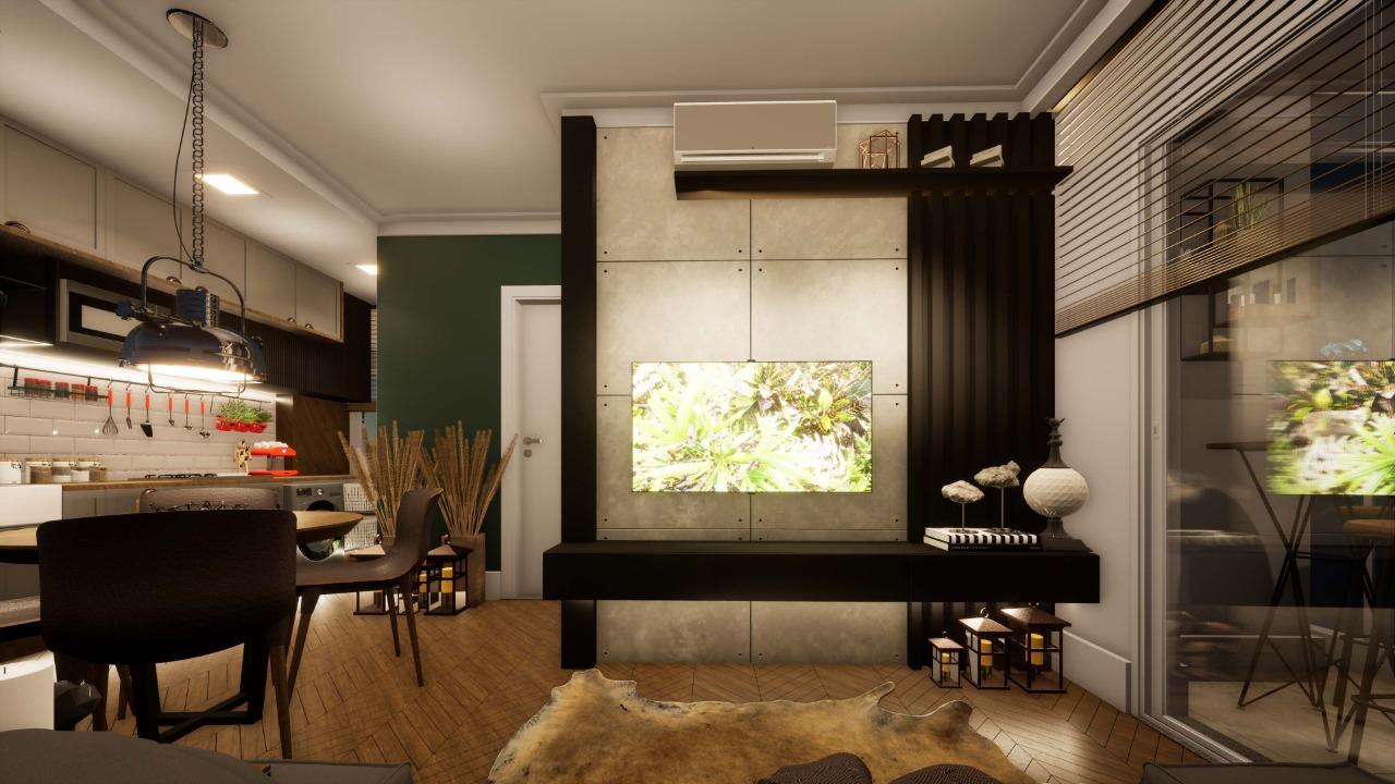 SALA PARA 2 AMBENTES COM VARANDA E PONTO GRILL COM BANCADA