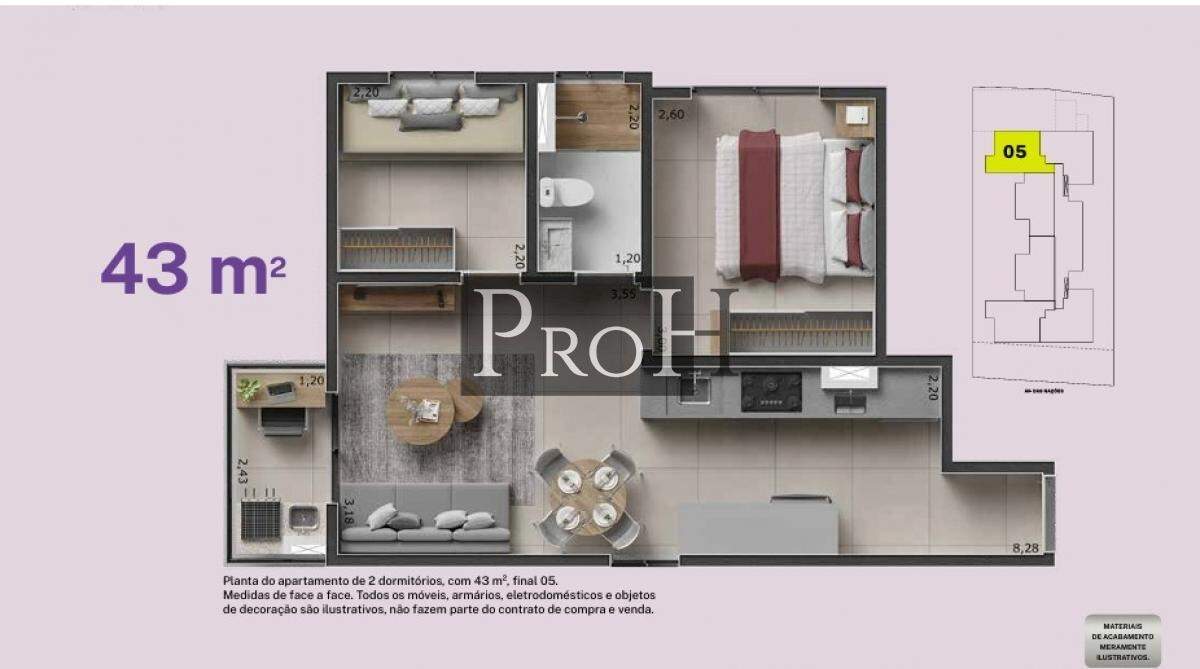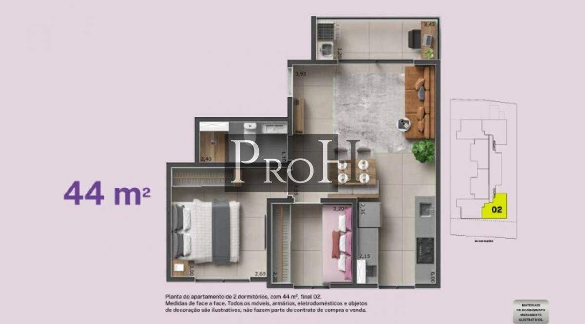 Apartamento à Venda com 2 quartos, 43 m² por R$ 362.000