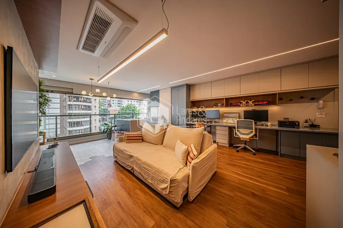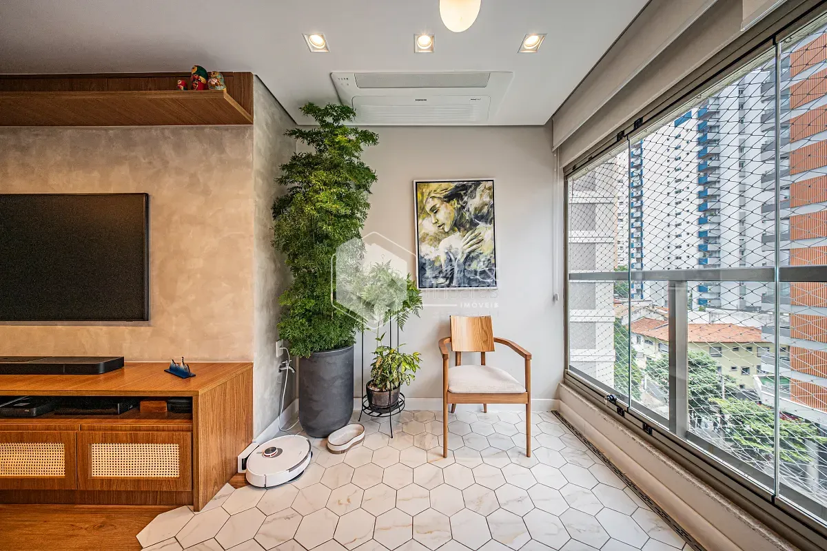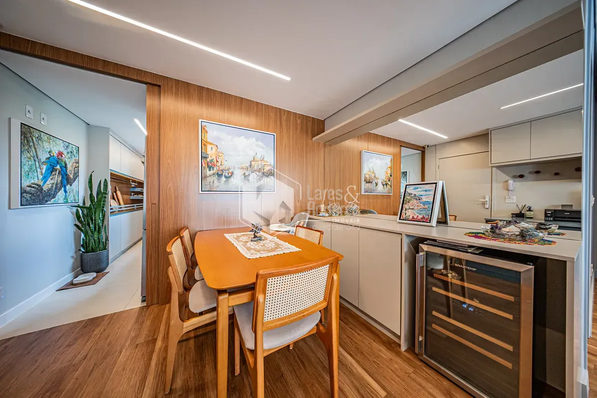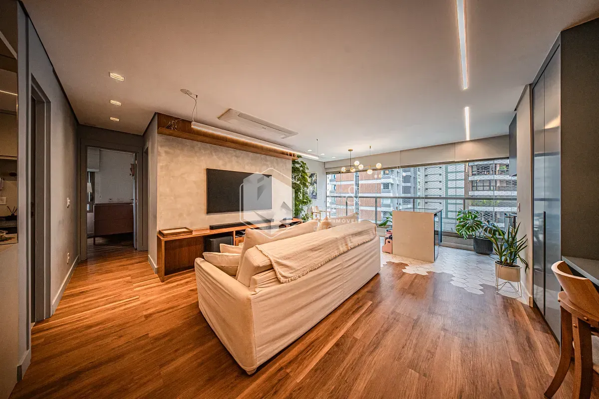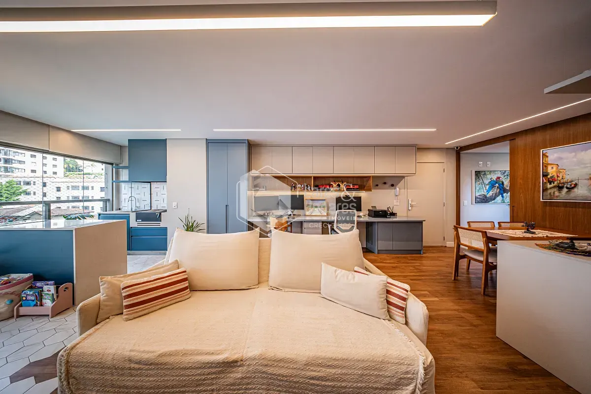 Apartamento com projeto arquitetônico personalizado, onde cada detalhe foi pensado para criar uma experiência única de morar. Um dos grandes destaques está na integração entre a sala e a varanda: o piso faz uma elegante fusão entre o revestimento frio e a madeira, criando um efeito visual que lembra as águas do mar encontrando a areia, um detalhe sofisticado que valoriza ainda mais o ambiente.