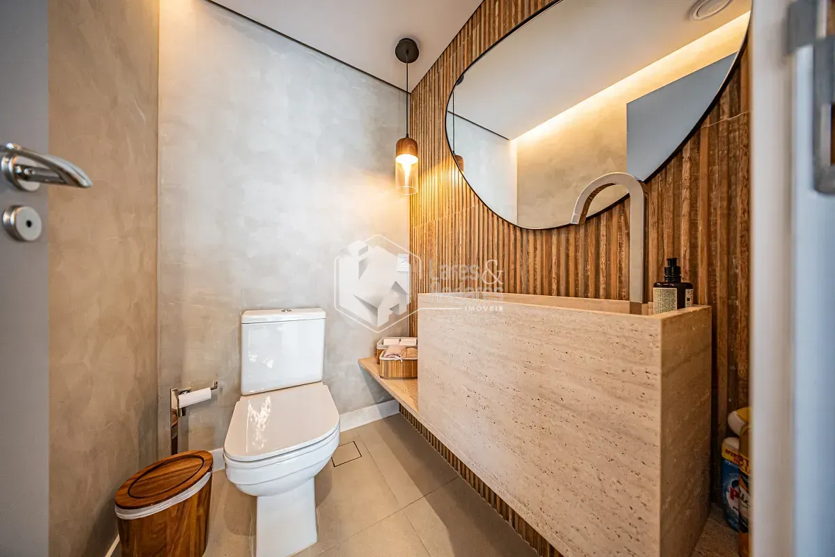 A área social foi planejada em três ambientes integrados, perfeitos para quem aprecia receber amigos para boas conversas e momentos especiais. Esse espaço é complementado por um lavabo estrategicamente posicionado, trazendo mais conforto e praticidade para as visitas. Durante a semana, um dos ambientes pode se transformar facilmente em home office, unindo funcionalidade e bem-estar no dia a dia.