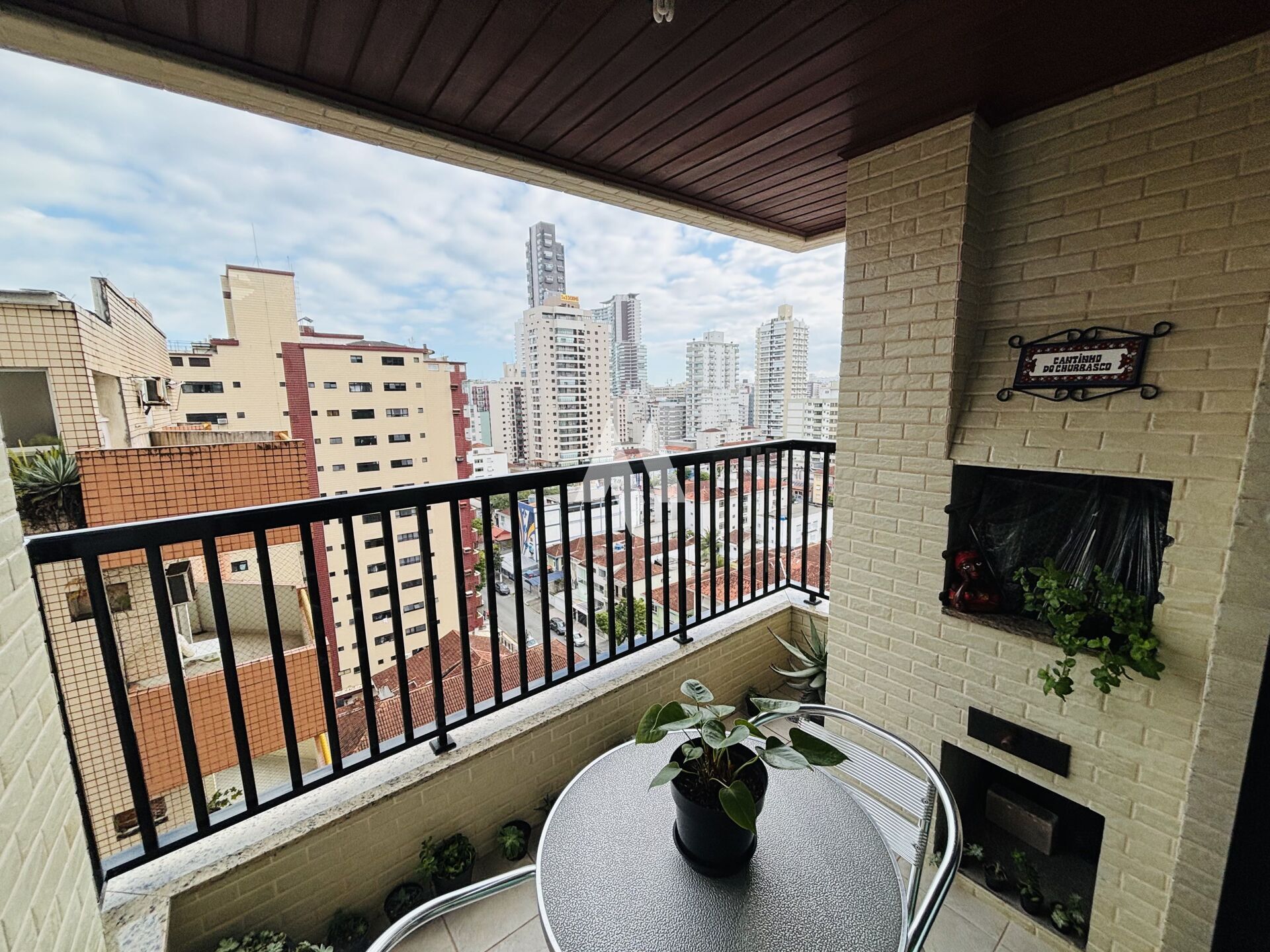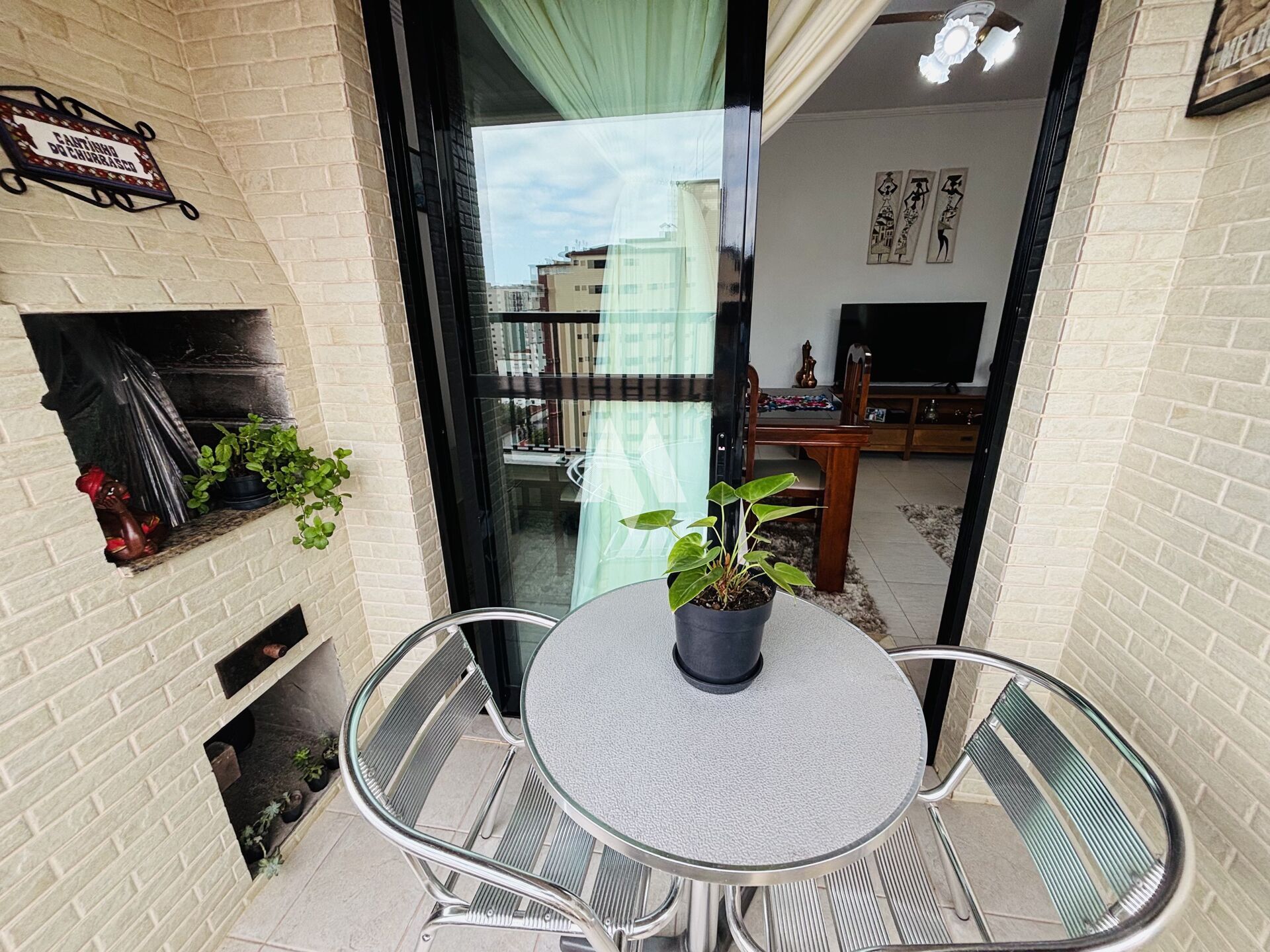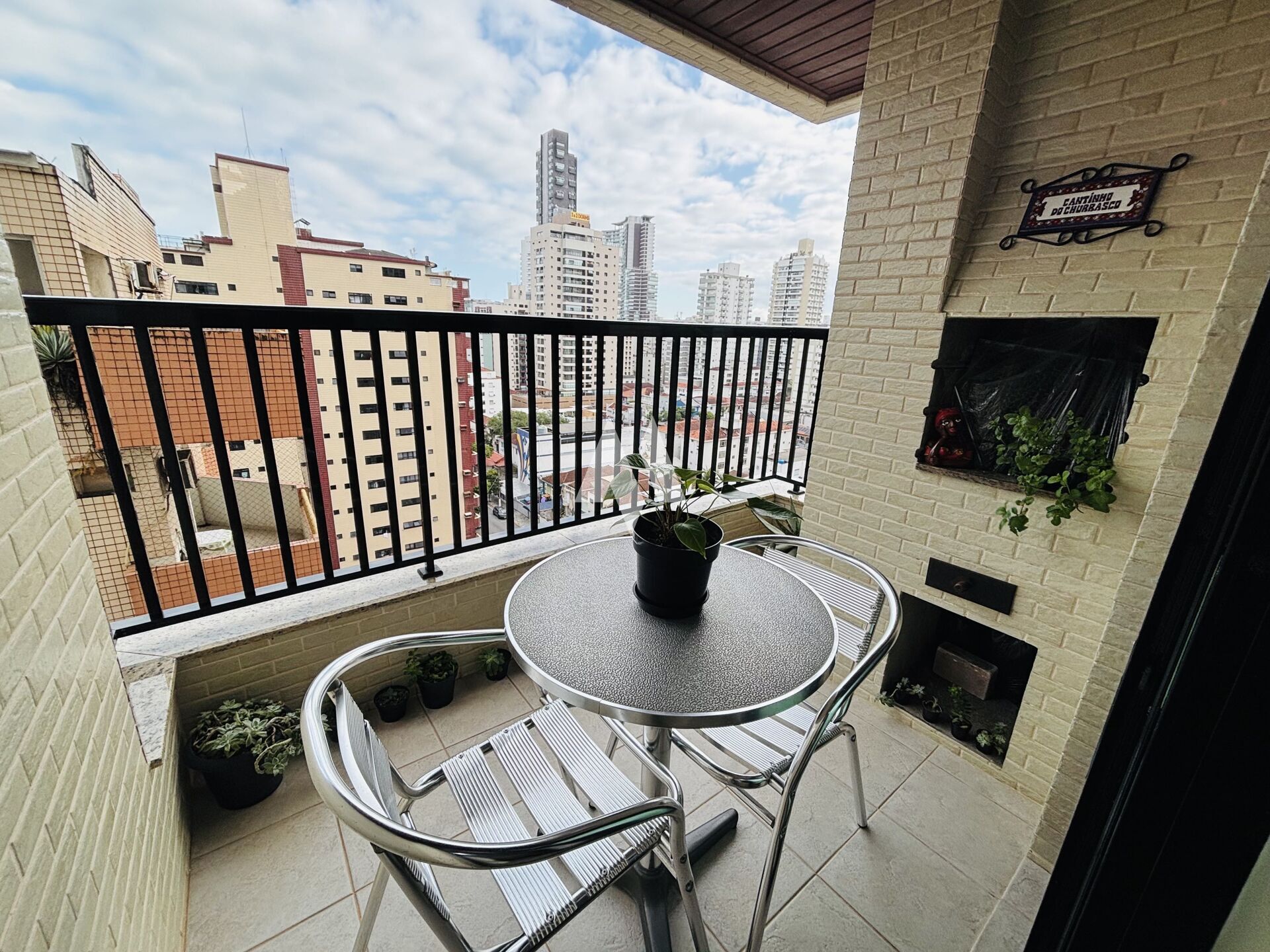 A varanda do apartamento é equipada com churrasqueira, perfeita para momentos de lazer e confraternizações.