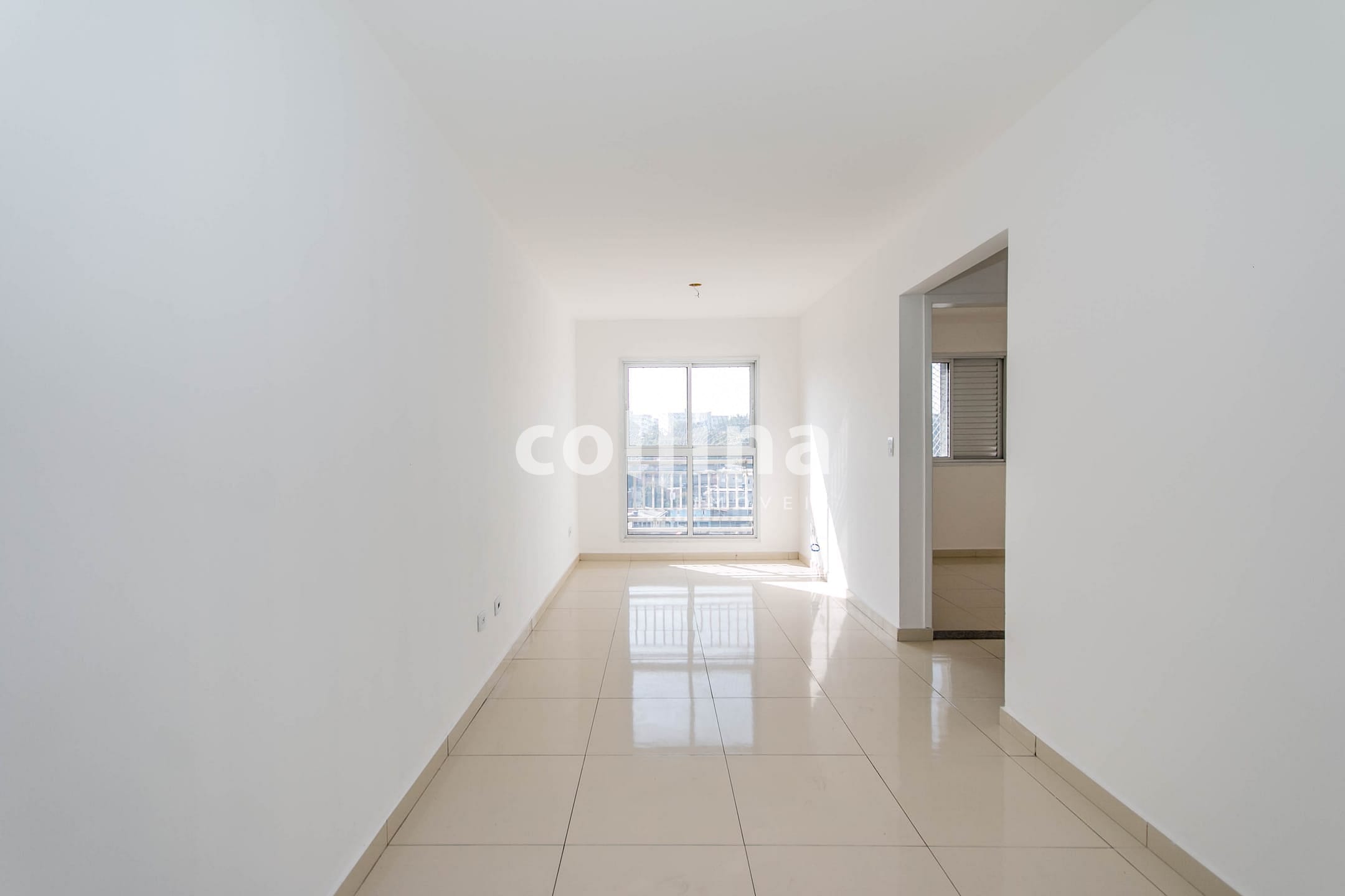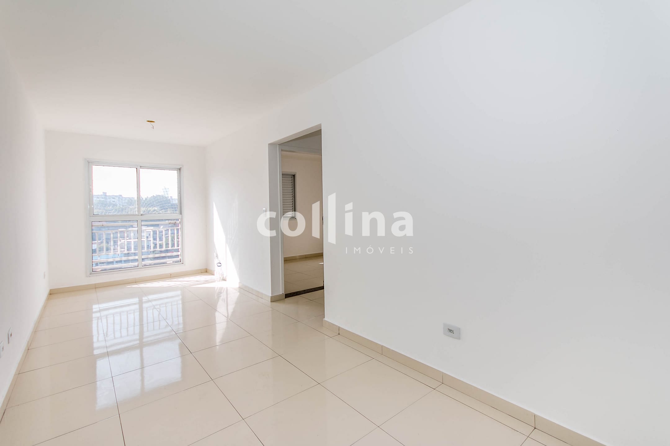Sala ampla com piso laminado e ótima iluminação natural