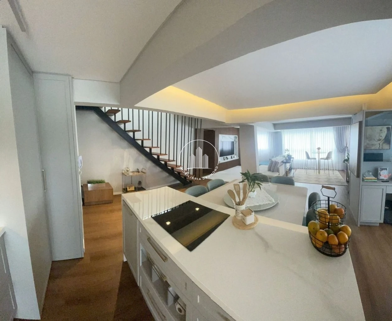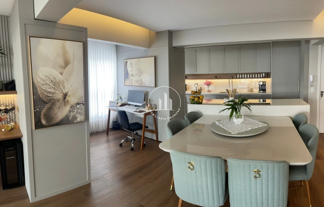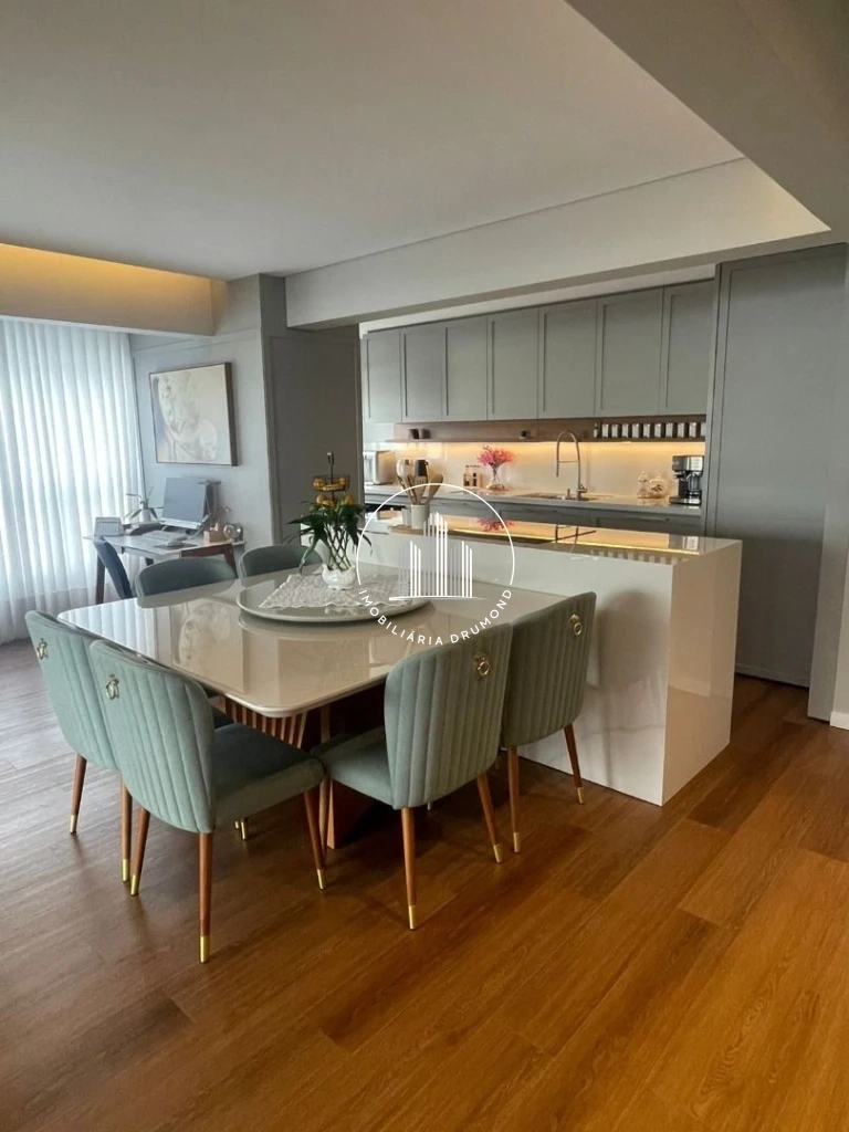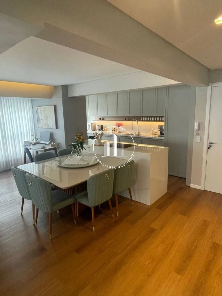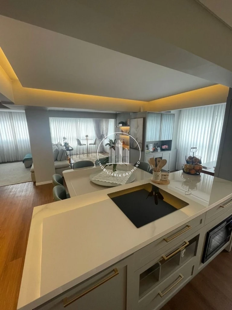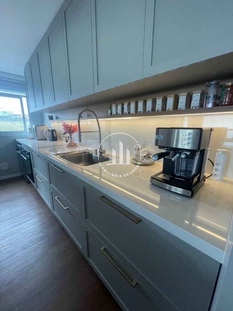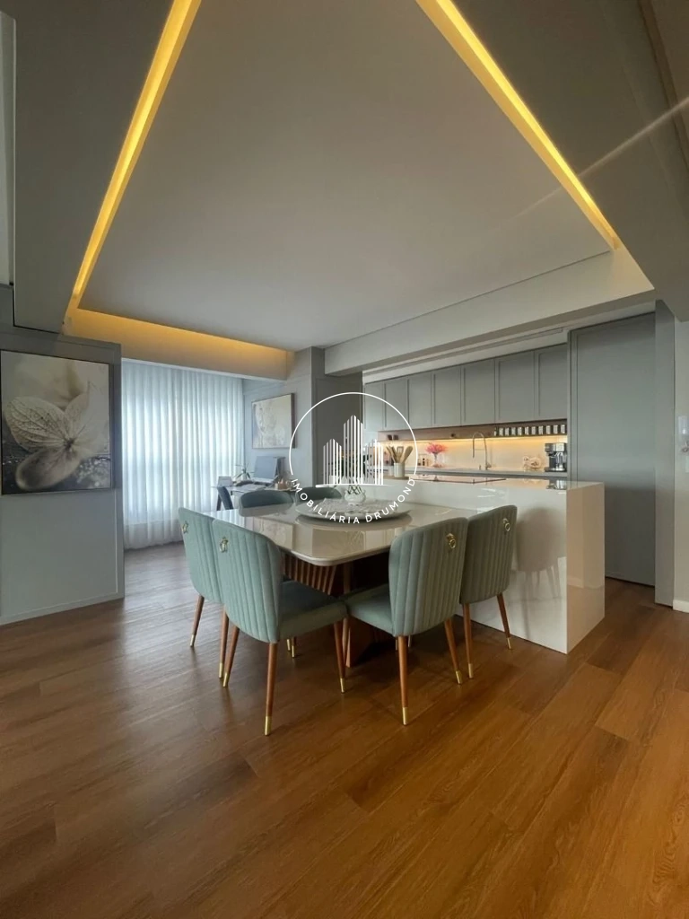O imóvel oferece conceito moderno com cozinha aberta integrada à sala de estar/jantar, além de sacada com churrasqueira. Todos os ambientes contam com acabamentos de qualidade, incluindo piso vinílico na área social e dormitórios, teto rebaixado em gesso com iluminação LED e persianas elétricas nos quartos.