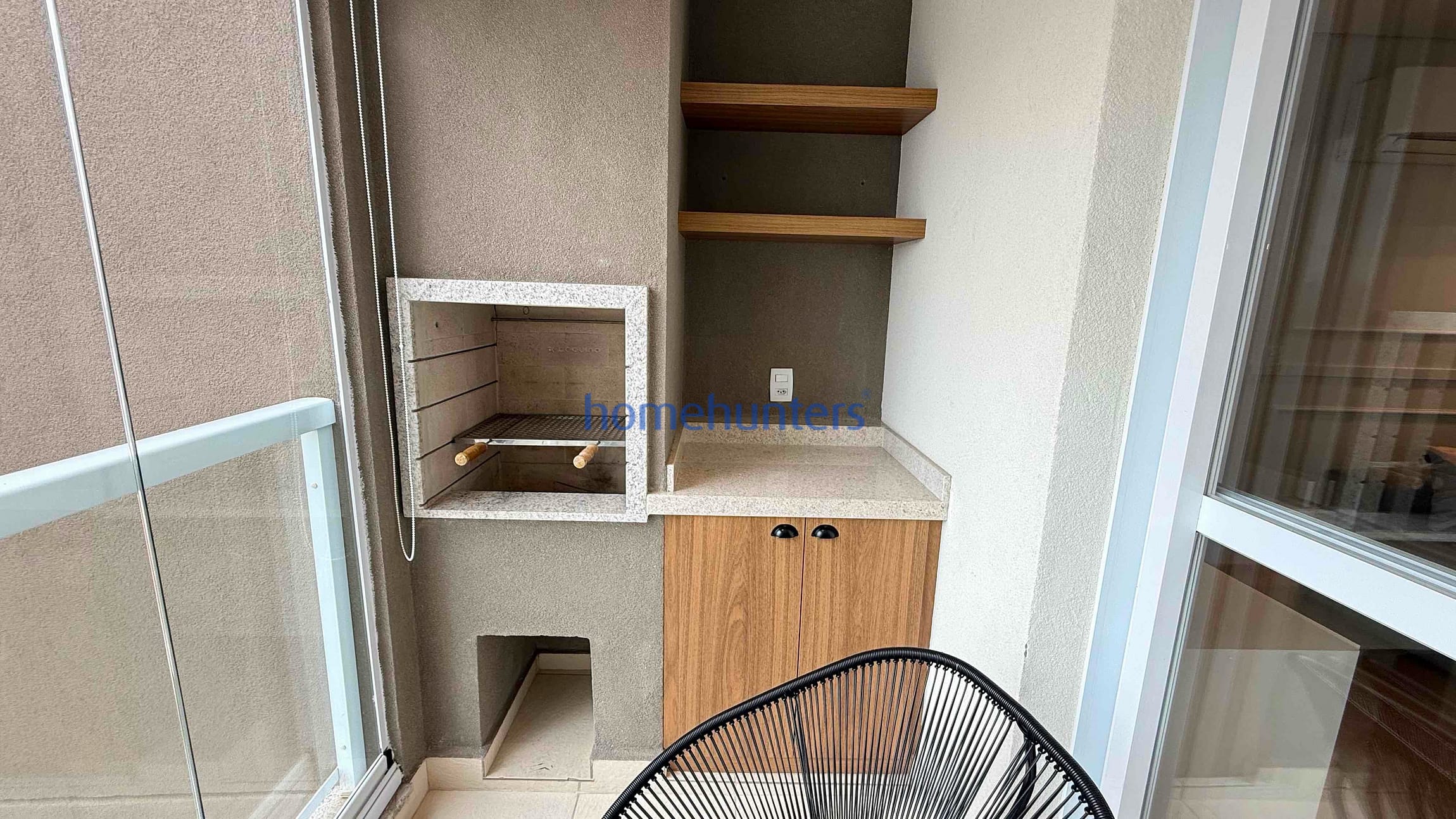 Sacada com churrasqueira, envidraçamento e excelente ventilação