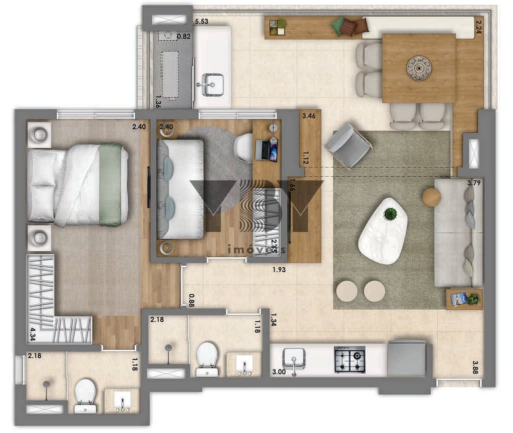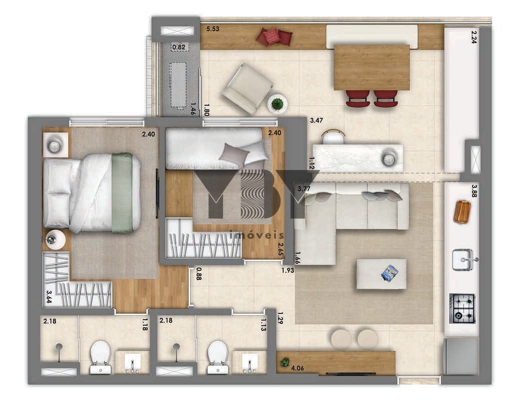 Apartamento à Venda com 2 quartos, 61 m² por R$ 940.580