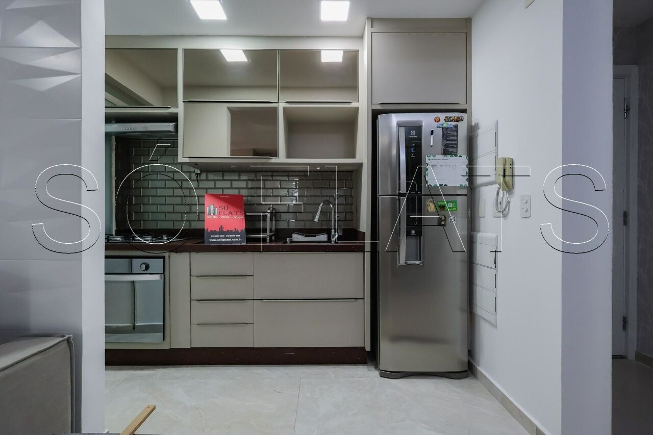 Apartamento alto padrão com 57m², cozinha no estilo gourmet completo, varanda e 2 vagas de garagem.