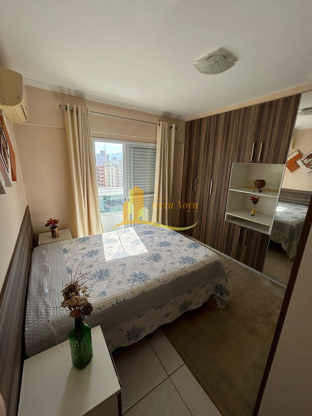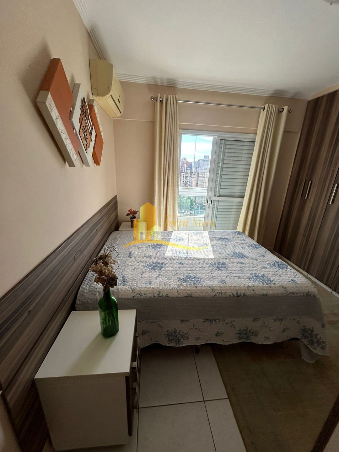 O apartamento conta com ar condicionado, proporcionando conforto em todas as estações.