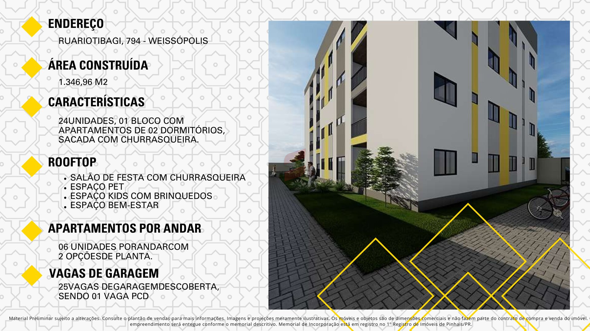 Apartamentos - Residencial Azadi - WeissópolisExcelentes apartamentos 3° andar, conta com 47,42m² de área privativa e 79.22m² de área total, com planta bem distribuída, ambientes integrados e boa iluminação natural.Sobre o Imóvel:Dormitórios: 02 Quartos;Banheiro: 01 Social;Salas: Estar integrada à sala de Jantar;Cozinha: funcional;Sacada: com churrasqueira e área de serviço;Vaga de garagem: 01.Apartamento entregue com piso laminado e áreas úmidas com cerâmica do piso ao teto.Localizado em uma das regiões que mais crescem em Pinhais, com fácil acesso à Av. Iraí, próximo ao Condor, com rápida conexão ao centro de Pinhais e Curitiba e próximo a comércios locais. Utilize seu FGTS, opotunidade de subsídios (MCMV/Casa Fácil) parcelamento até 420 meses.Previsão de entrega: Dezembro de 2026