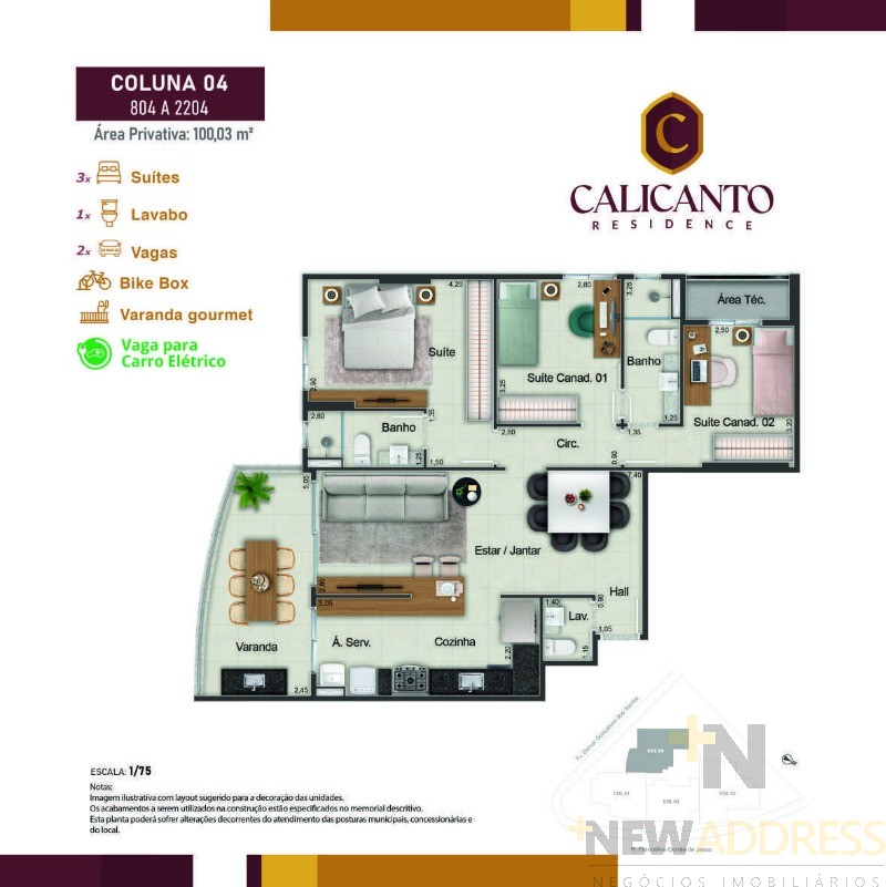 Calicanto Residence: Apartamento com 3 quartos, 2 vagas de garagem e lazer completo. Venha conferir!