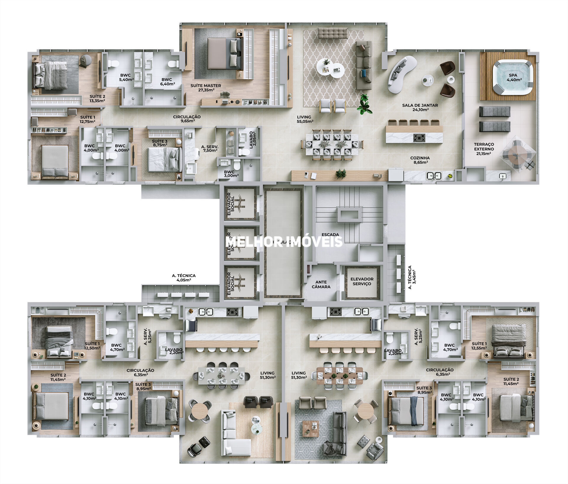 - Áreas comuns decoradas, climatizadas