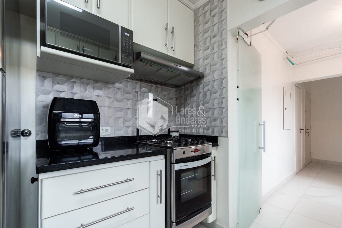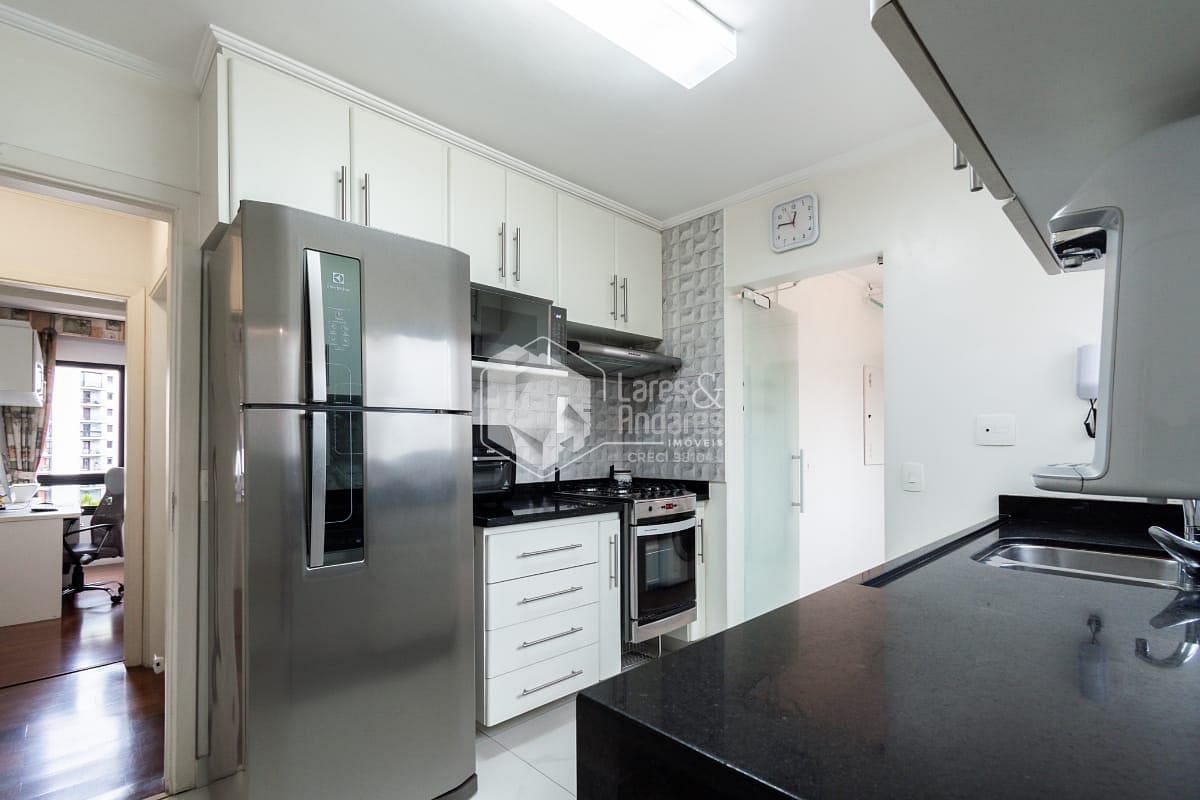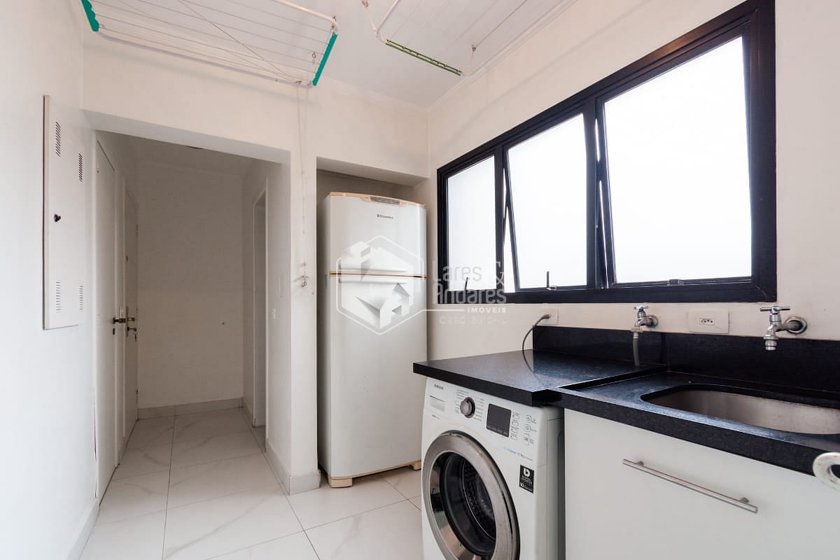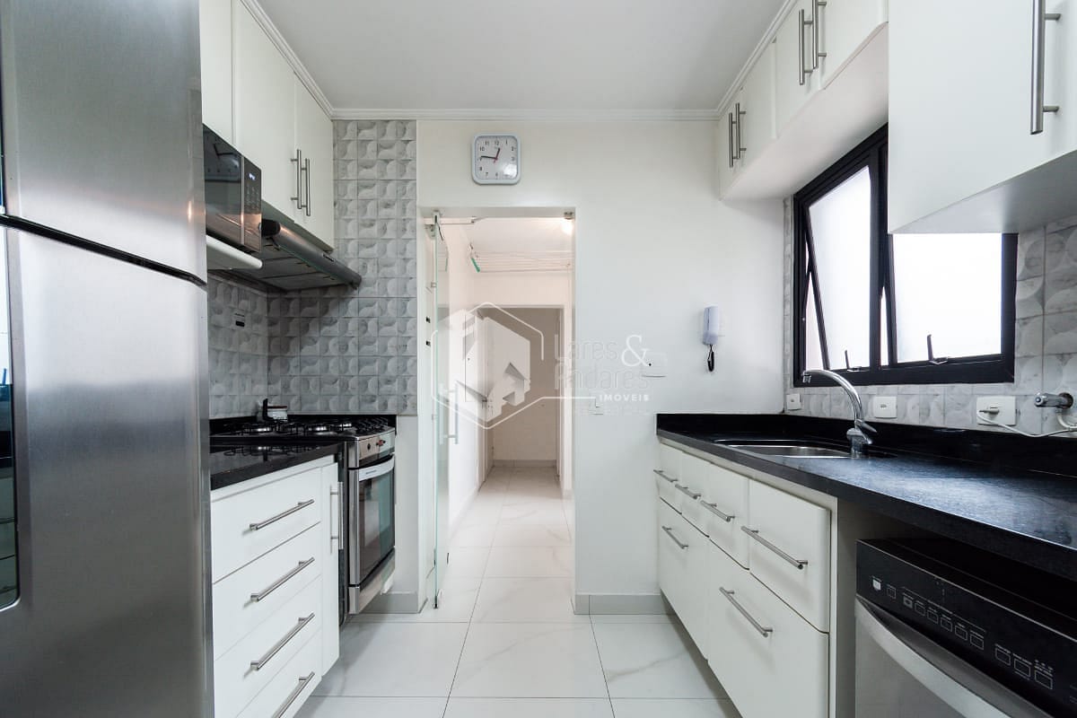 A área social é completa e funcional, com sacada equipada com churrasqueira, conectando harmoniosamente a sala de jantar e a sala de almoço. A cozinha é bem planejada e acompanhada de área de serviço com dependência completa para funcionários. O imóvel dispõe ainda de três vagas de garagem determinadas e depósito privativo.
