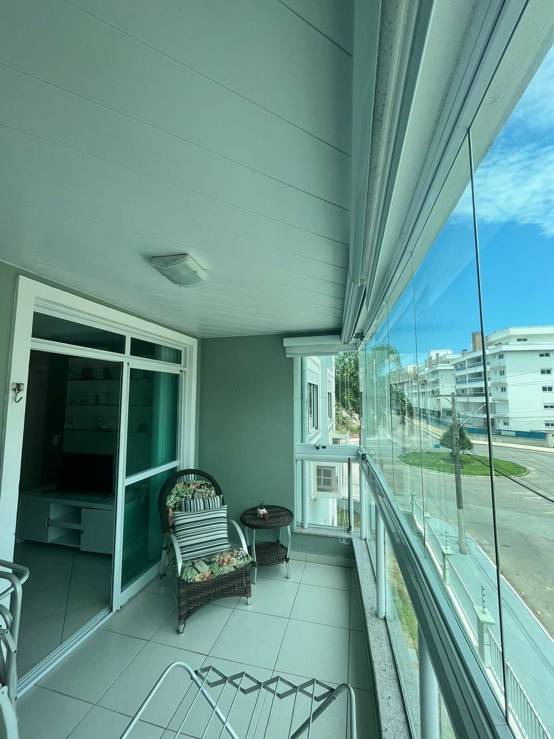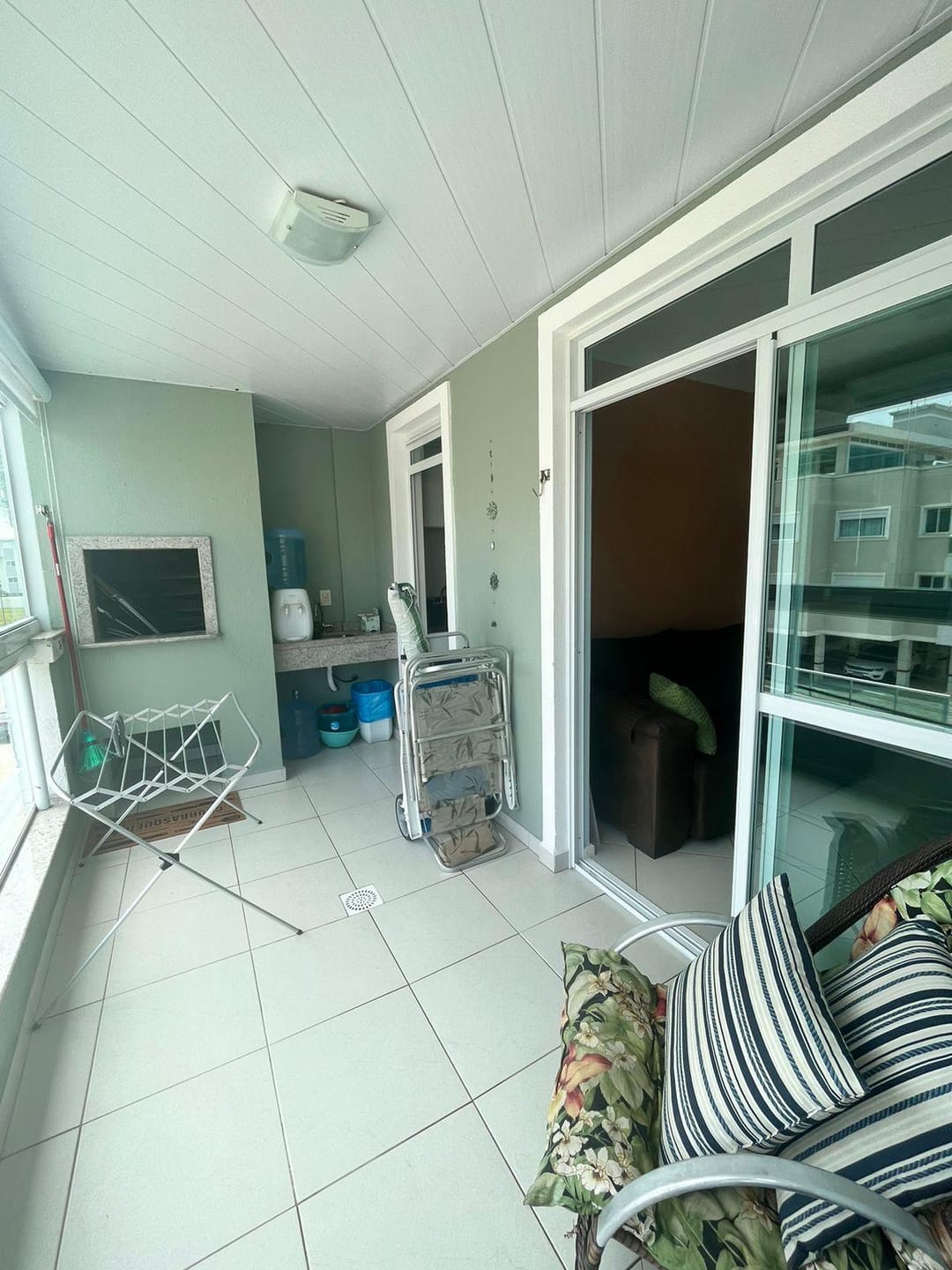 Sacada com churrasqueira e vista para a rua