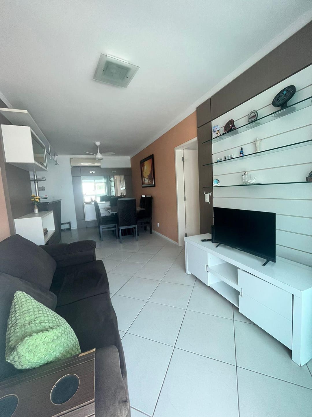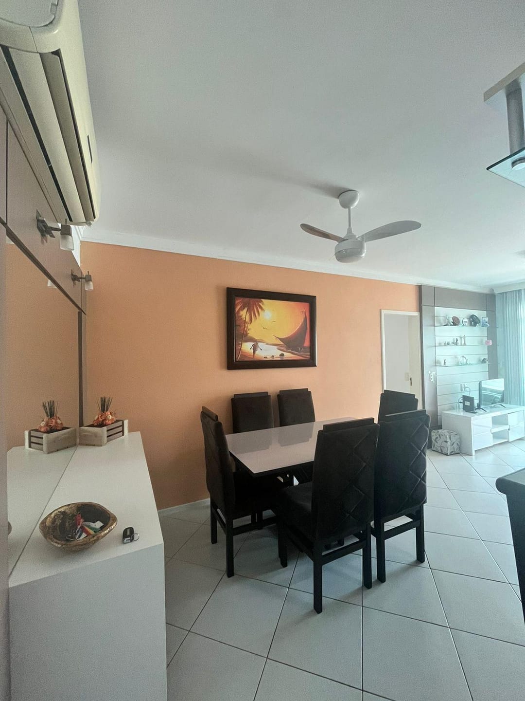 Sala de jantar integrada à sala de TV