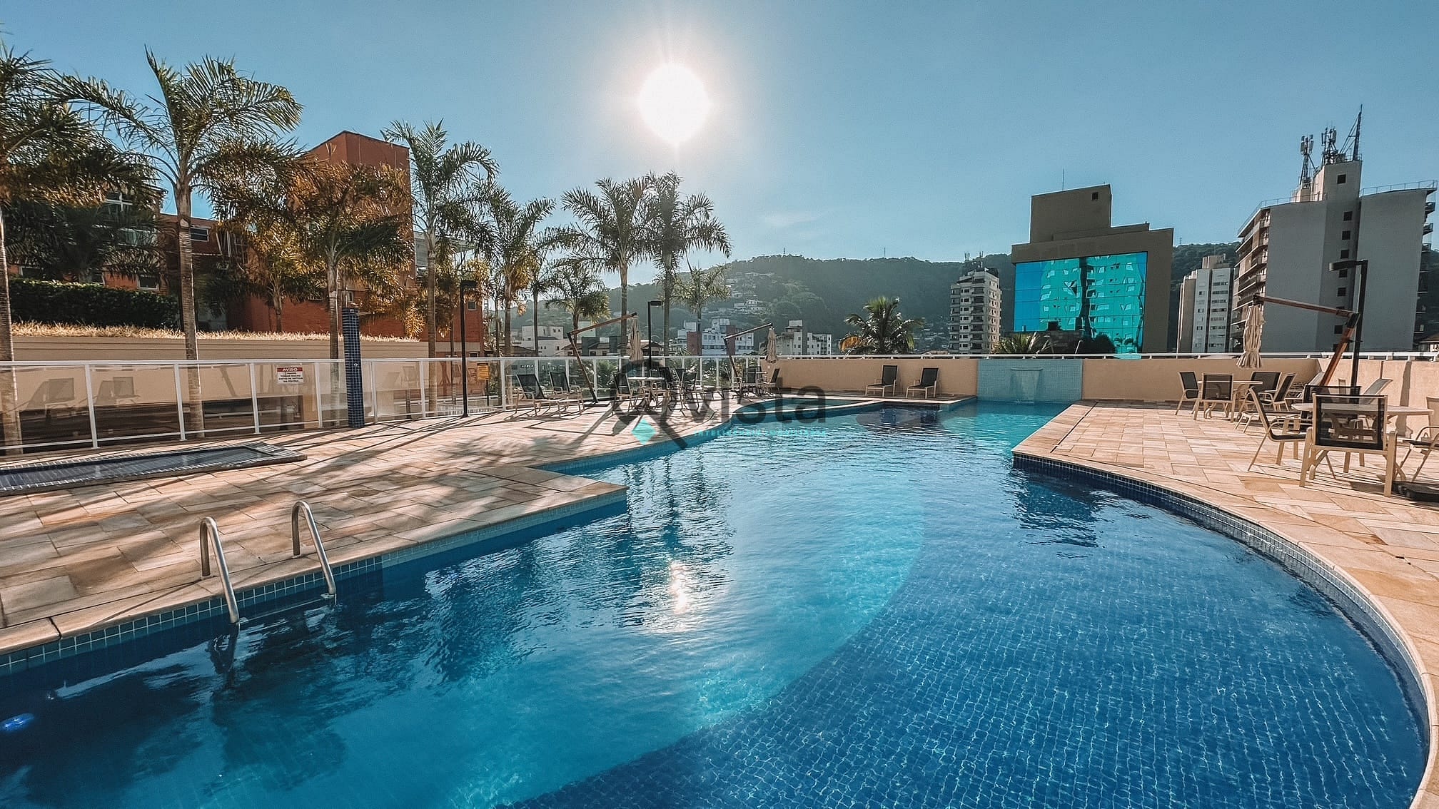 Piscina: Com raia e cascata.
